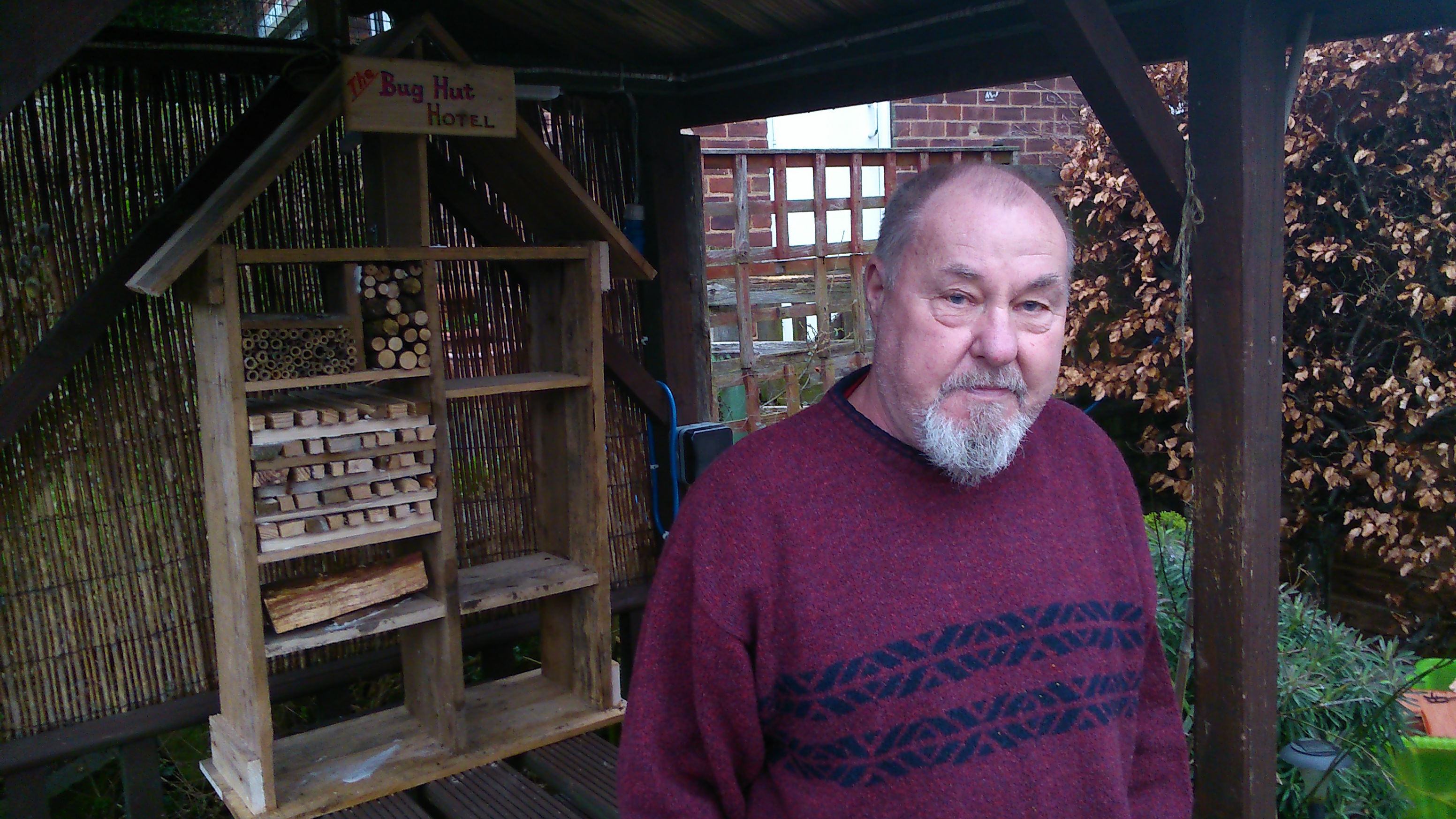 DSC_0163This is Stewart Gledhill, of Troutbeck Avenue, standing in his front garden in front of the “bug hotel” he has built for the remarkable new nature reserve that Hirst Wood Regeneration Group have been developing on the other side of the canal. Stewart and his wife Pat (of whom I also had a really good photo that has somehow got accidentally deleted!) have been actively volunteering on that project, but they have also dreamed up a solid plan for what they’d like to see happen on the Baildon side of the river. Stewart sent me a detailed letter this week, which you can read here, accompanied by a sketch diagram of the esate, which you can see here. (Uploaded with his permission.)