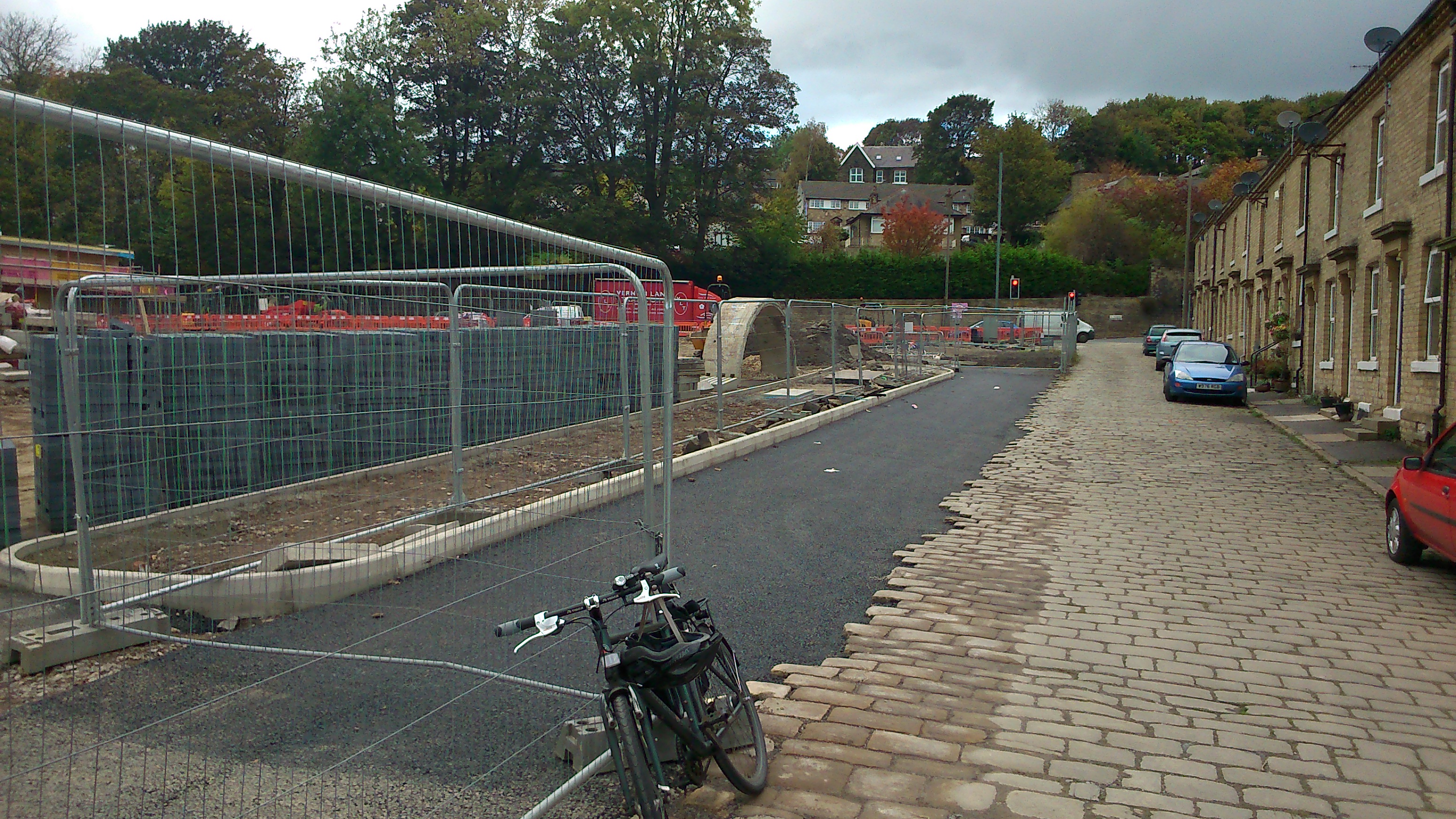 Now then… All of these map images are close-up photographs I’ve taken from the large maps on display to the public in Bradford Central Library’s Local Studies section. (There’s no indication there of any copyright issues with the maps, so hopefully I’m not breaking any laws here.) But for some reason the library’s big maps don’t go past 1934. After that we move to a different scale of OS mapping, but we also make a huge leap to 2003…