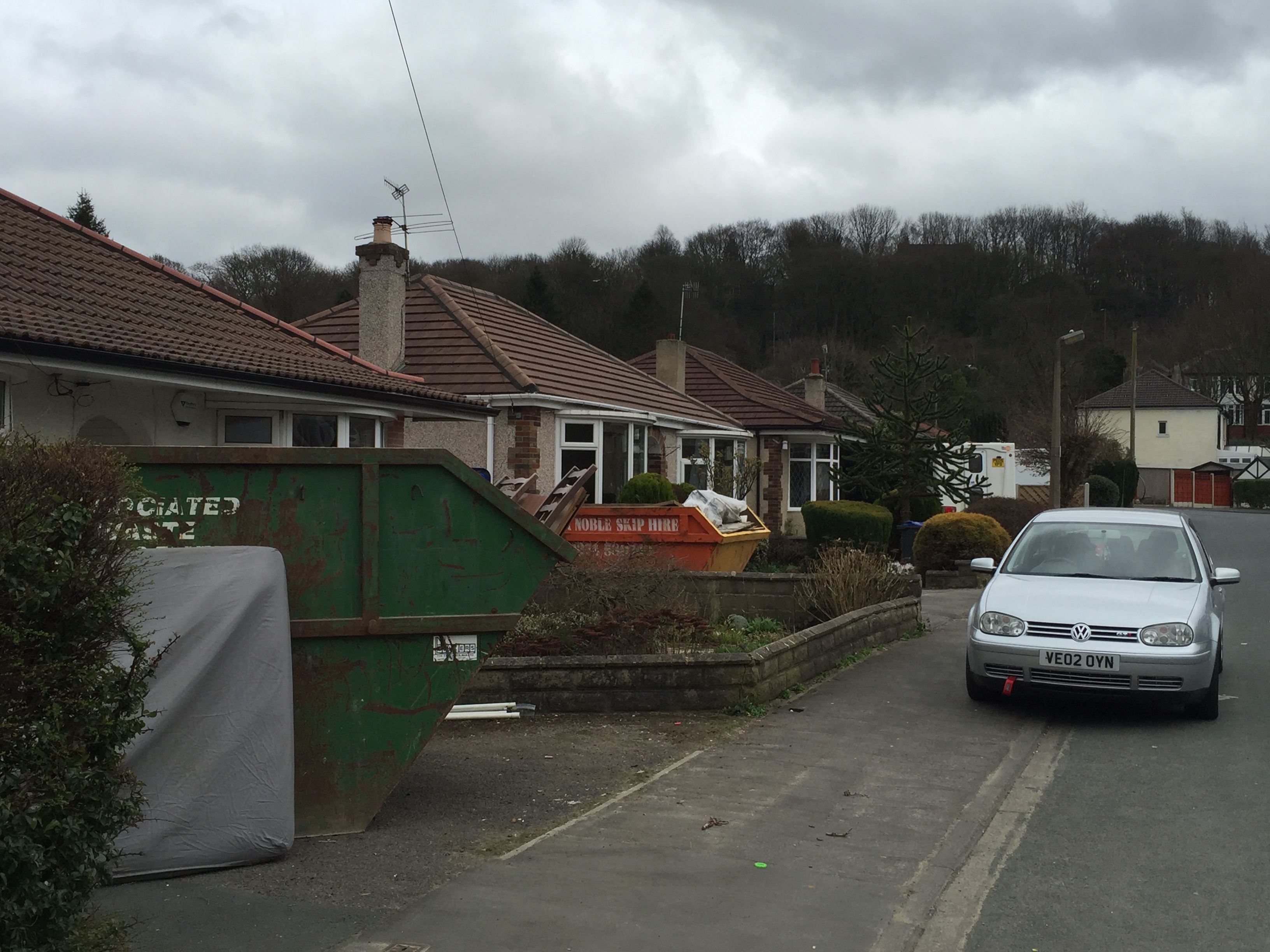 The new sewage works are more clearly labelled now. The worsted mill on the riverbank has now finally acquired the name of Dock Mill. But most strikingly, we now have the spanking new Dockfield Road, leading all the way up from Otley Road, at Baildon Bridge. The road has been built by the SUDC to provide better access to the sewage works and thus take the pressure off Dock Lane (which was no longer fit for purpose, with the mounting volume of traffic, and with that low bridge under the railway). Along Dockfield Road and the adjoining Dockfield Terrace (which links to the older homes nearer the mill) we now have two rows of early council housing — homes literally built by Shipley Council, with the very latest spec in plumbing and drainage… This was an early statement about the unsuitability of the old back-to-back homes in the Windhill area — visible in the bottom of the 1893 map above, and eventually demolished by SUDC in the years after World War II.