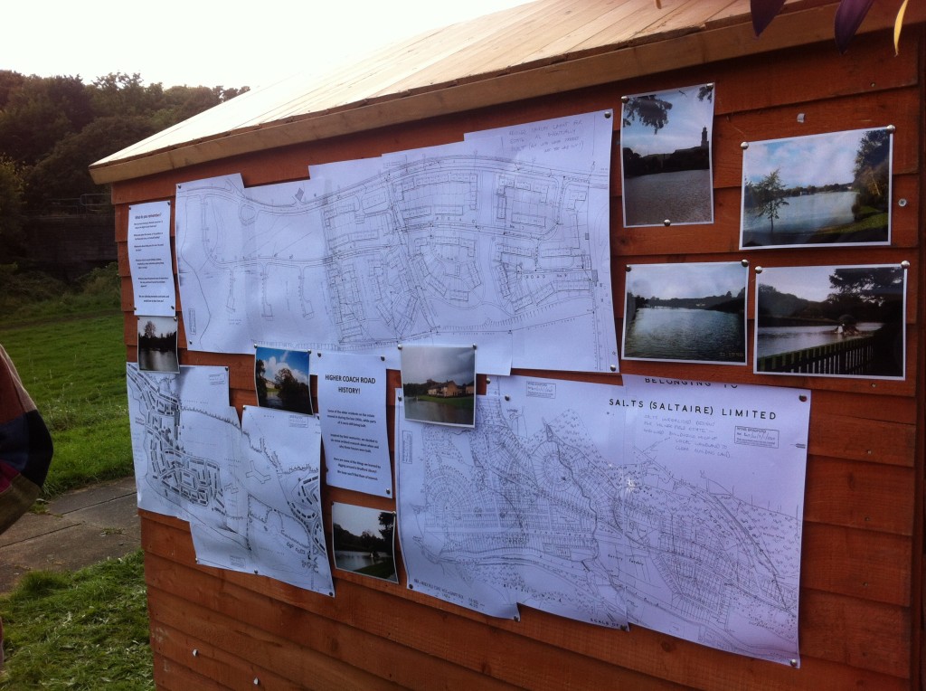 Yet another of the “beach huts” was designated as the Higher Coach Road History Hut, and featured exhibits showing old plans for the area, from the West Yorkshire Archive Service, and a summary of what we’ve learned about the estate’s history from (a) the archive and (b) the memories of longer-term residents. In response to various requests to make this material avaialable, the key points from this historical work are re-presented below…
