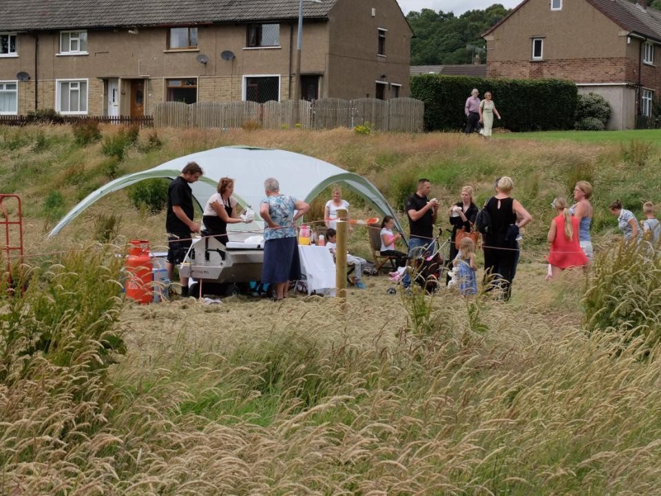 On Saturday afternoon (July 11th), in the cleared area on the outside of the staked-out rectangle, we held a community barbecue for residents on the estate – with conversation, games for the kids, etc…