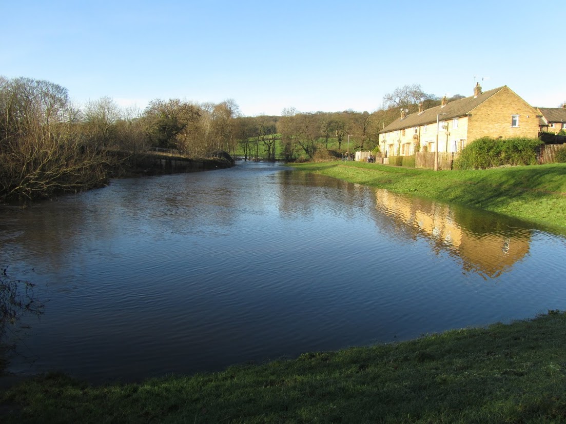 This was the view downstream in Saltaire, looking out over the Roberts Park cricket pitch. Rather wonderfully, there was even a strategically placed sign, stating the obvious… But I choose to read this is as further evidence of that general urge people had to help and inform each other…