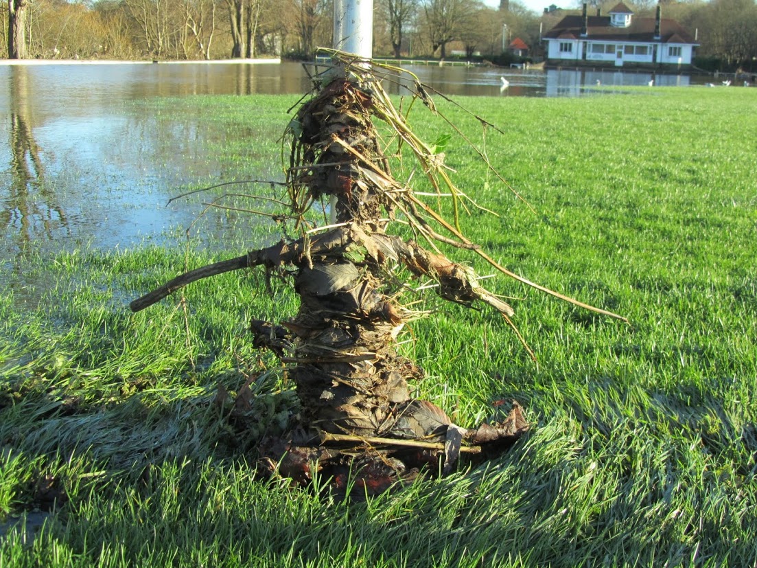 … But notice the debris that had collected on the railings to the right of the picture above… Martin also snapped the fantastic picture below, of one particular railing where the an almost human figure seems to have been created by the flood. Let’s call it Denis… (the Water-man)