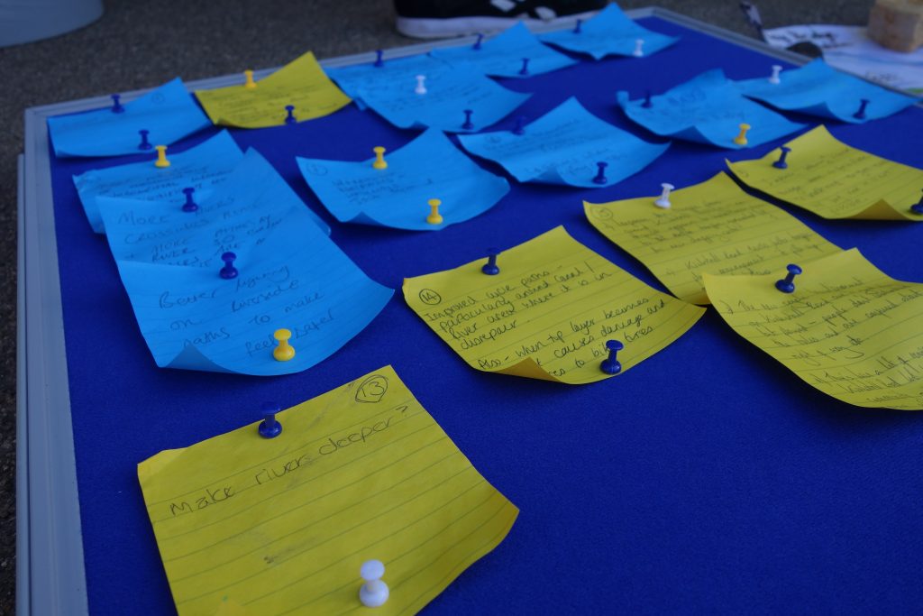 In hindsight, we should perhaps have made the map bigger. It was made to fit onto one panel of these blue stand-up boards, used here to gather written feedback on the plans.