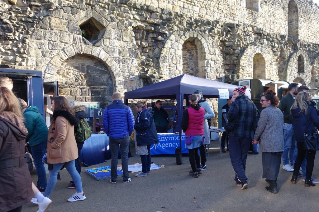 The ruins of Kirkstall Abbey, Leeds — built on the flood plain of the River Aire around 850 years ago. A regular event here now is the Kirkstall Abbey Market, pictured above. The market on Sunday 29 October 2017 featured an unusual contribution in the form of a stall run by the Environment Agency (EA)…