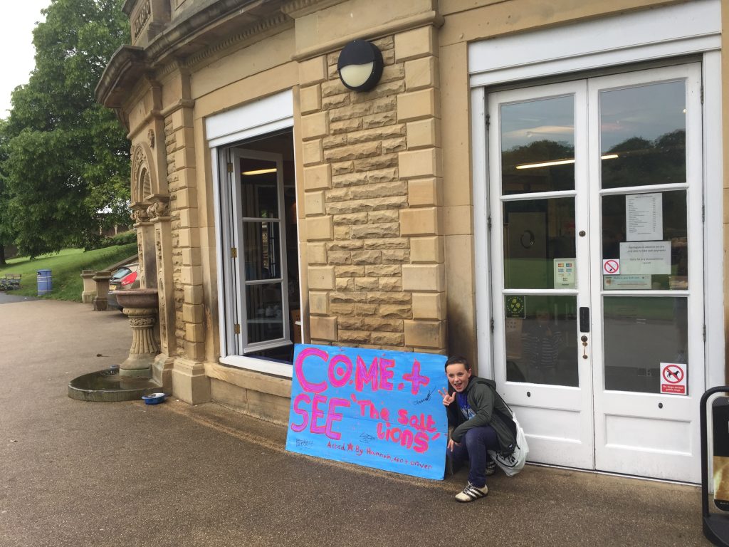 The Salt Lions is a 6-minute spin-off from the film project, which celebrates the Victorian bedtime tale of how the stone lions on Victoria Road would leave their pedestals at night and wander down to the river to drink its waters. The kids responded to this by making a sepia-tinted silent movie, complete with captions, in which three of them hunt high and low around Saltaire for the “missing” lions…