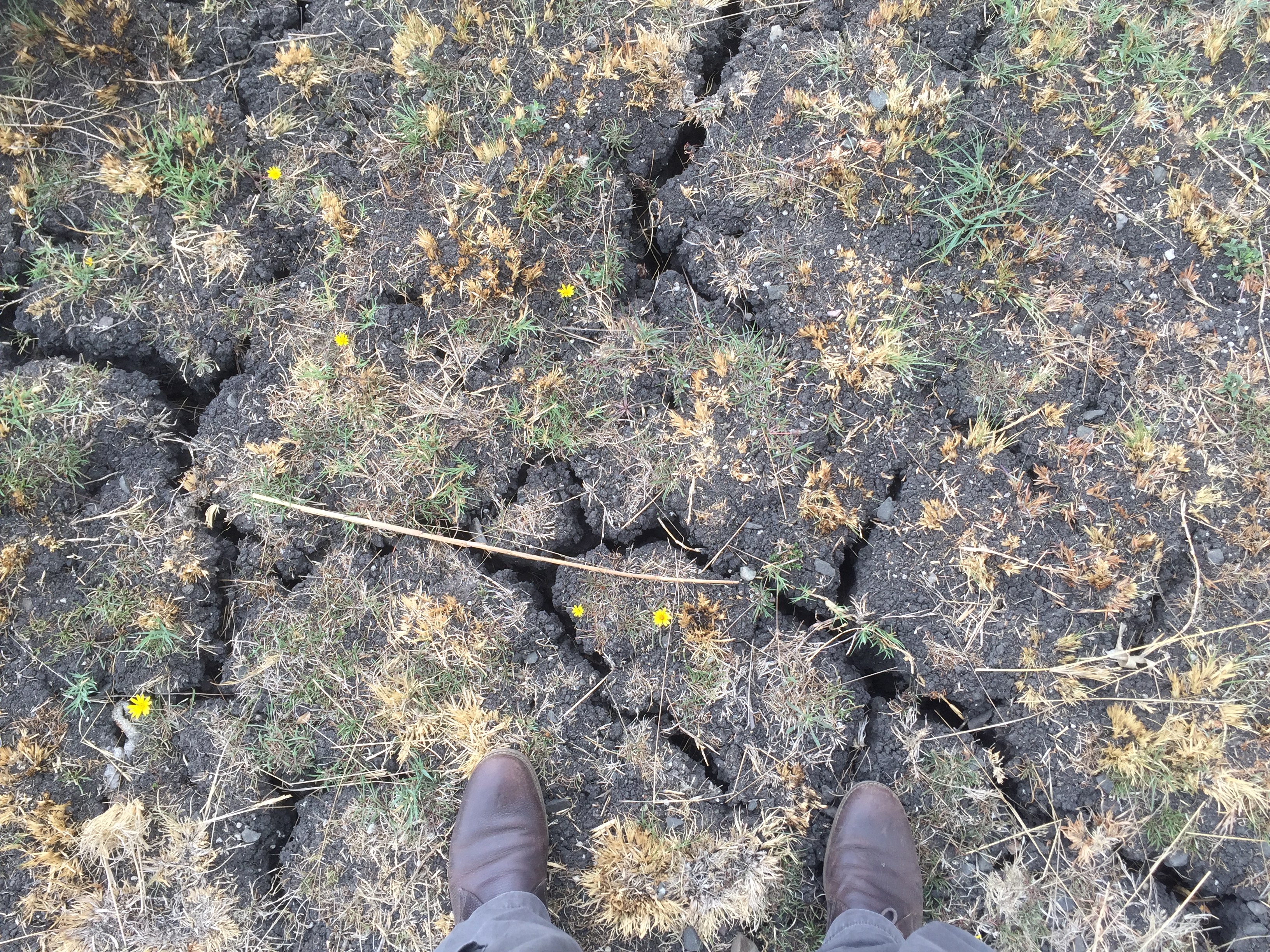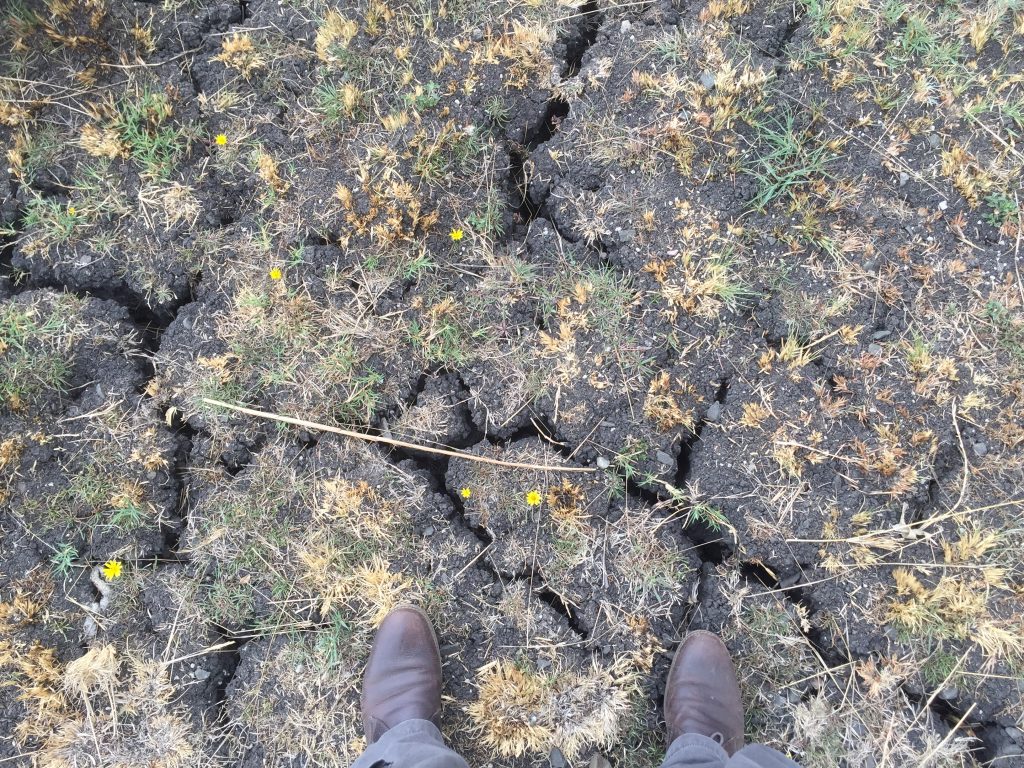 I’m no expert on groundwater, but I can’t help wondering whether this experience of springs drying up is another consequence of the area being subjected to more industrialised farming. (It’s well established that the water table will drop if land is mined more intensively for water supplies.) Whatever — it’s clear for anyone to see that the ground here is extremely dry, even in a relatively drought-free year like 2017. I put my size 11 feet in the photo above to highlight the scale of the cracks in the landscape. And this is land that should be relatively wet, since it lies close by to the one small stream we found on our reccy of the area… A closer look at the stream itself provides further evidence of why only the most desperate of drinkers would consider taking water from this “natural” source rather than from a piped supply.