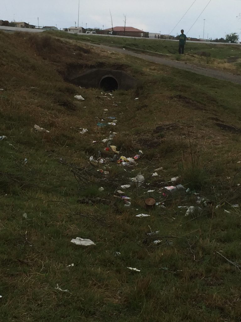 Almost everywhere you go in Leandra, there is litter like this. I guess when the environment is already poor — in every sense of the word — there’s not much incentive to keep it clean. Apparently such littering is a problem all over South Africa, but nobody really knows what to do about it — and in the great scheme of the problems here, it probably doesn’t rank that high on the priority list.