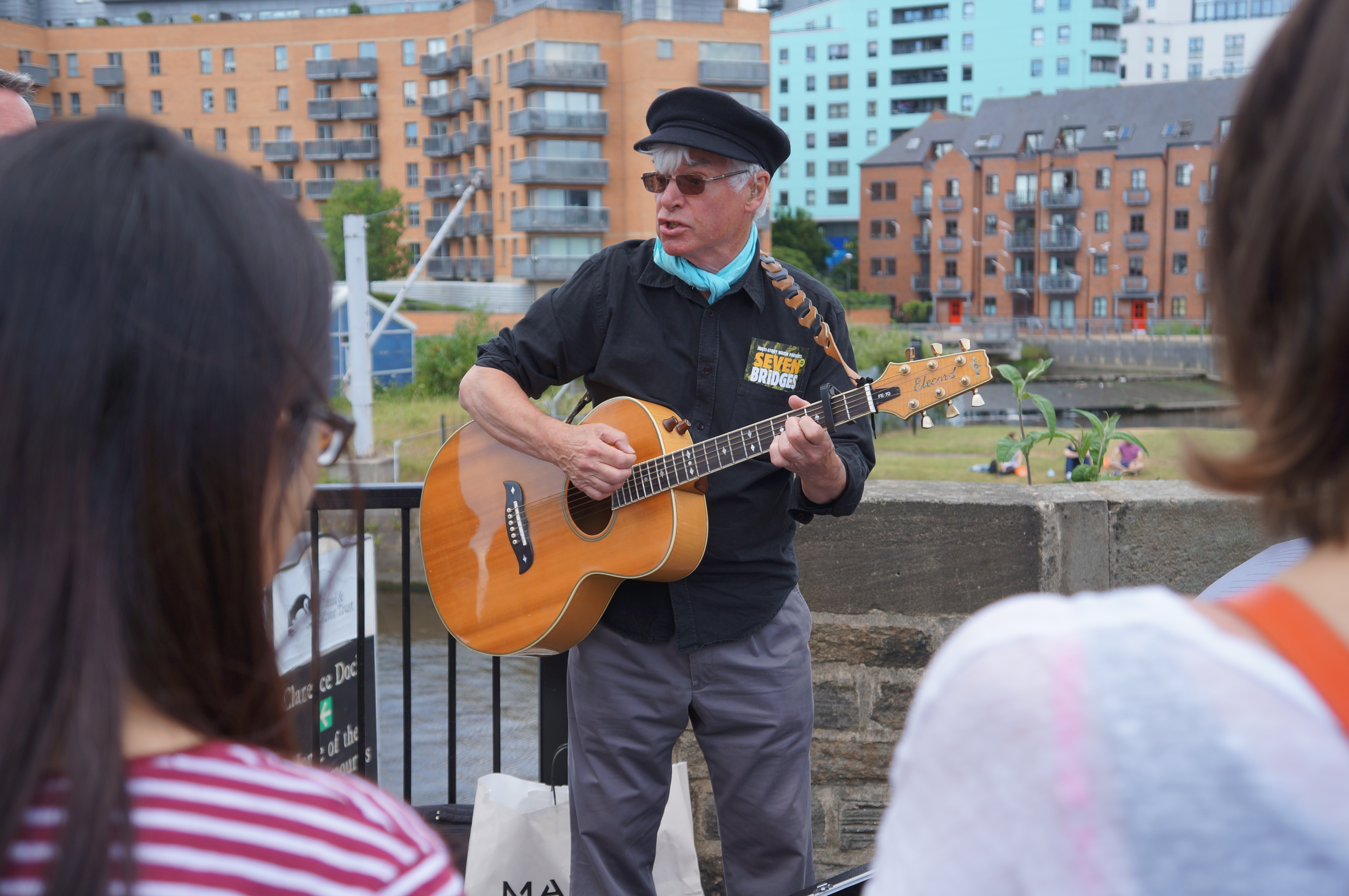 Singer-songwriter Eddie Lawler, also known as ‘the Bard of Saltaire’ (and originally a co-founder of the Saltaire Festival) has also been involved from the get-go. He co-performed with Steve in the Blue Route section of our original Multi-Story Water tours (for which he wrote the song ‘Bradford Canal’), and has since appeared and sung in Salt’s Waters (for which he wrote ‘The Ballad of Little Beck’), Pleasant Valley Saltaire, Seven Bridges (Leeds), and Weir Science (‘What’s Going On at the New Leeds Weir?’). Eddie’s personal website is here.