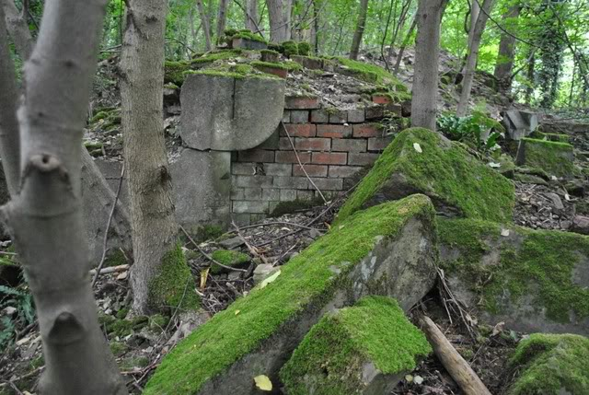 The stones that are left are now shrouded in green / With lichen and moss for a cover