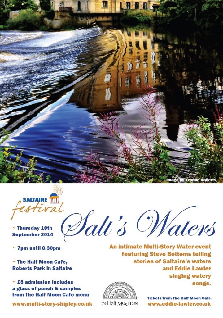 The title Salt’s Waters refers to a number of different versions of a words-and-music collaboration between Multi-Story Water researcher Steve Bottoms and the ‘Bard of Saltaire’, Eddie Lawler. These versions are as follows: