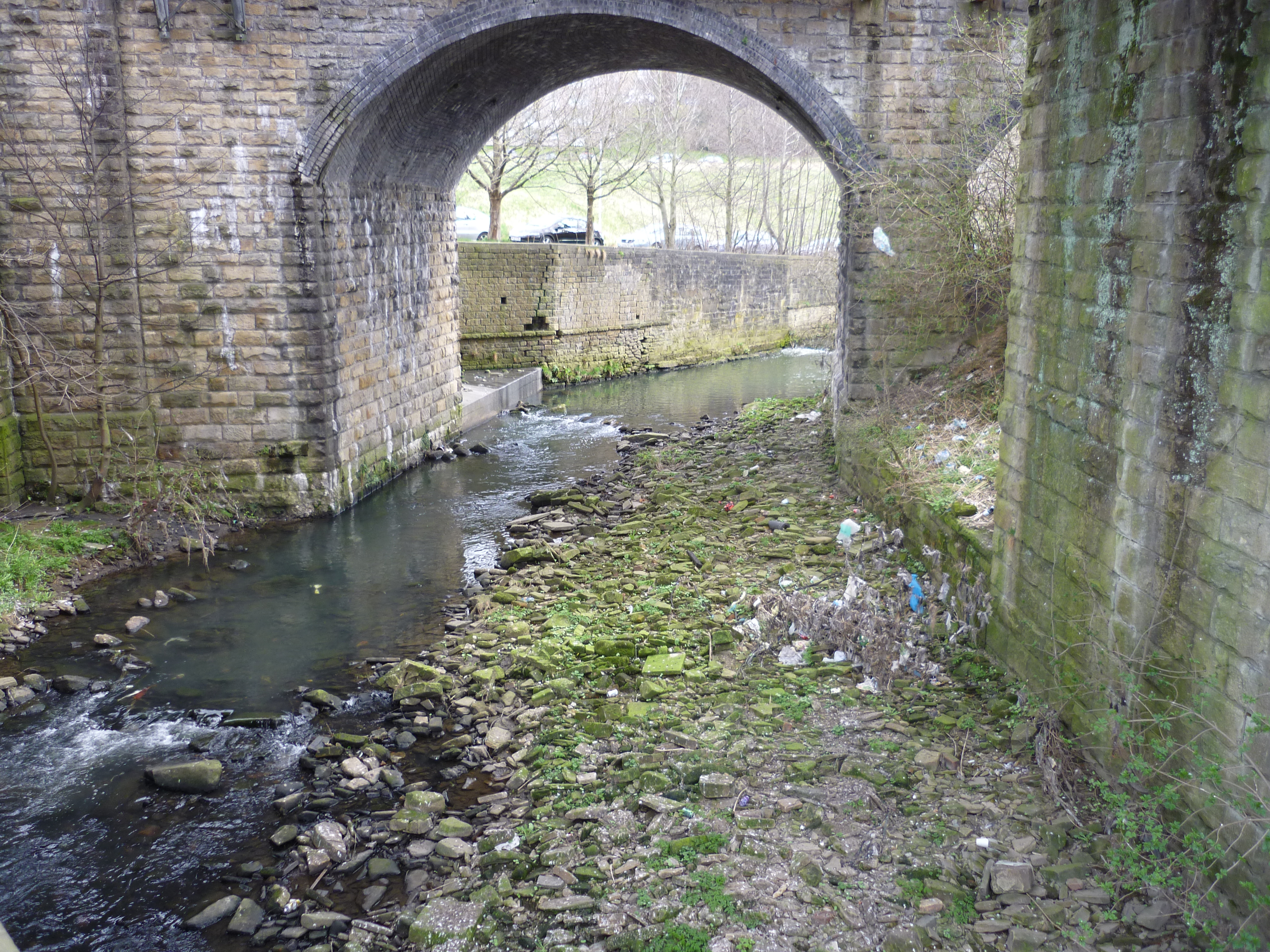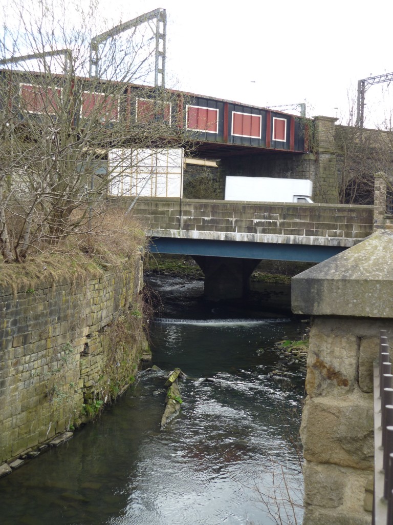 The McD’s is adjacent to the main road towards Leeds, and the Beck here flows right underneath both the road and the railway, as they criss-cross each other…