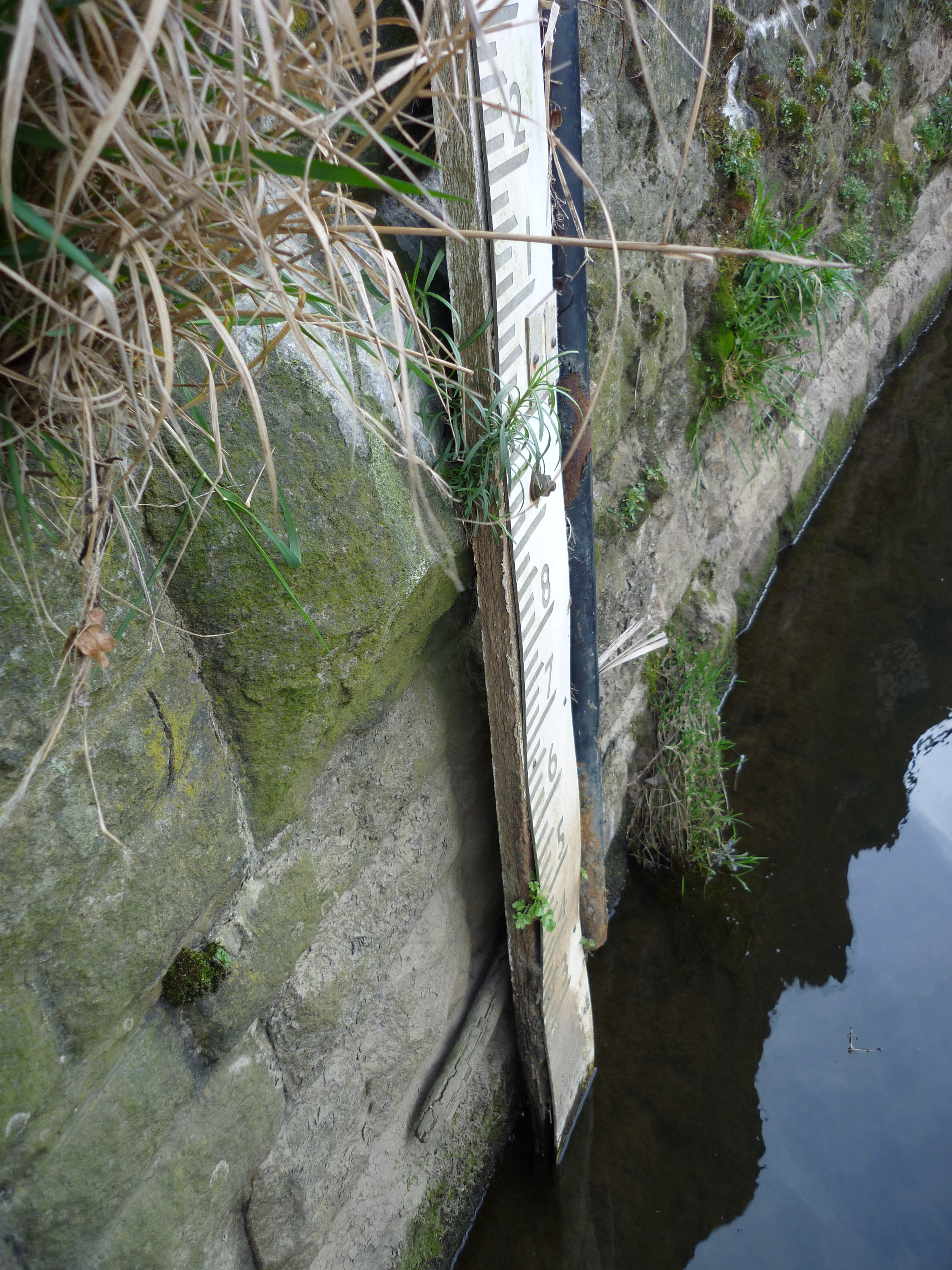 Just past the bridge, we find a water level marker…