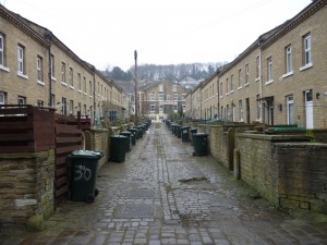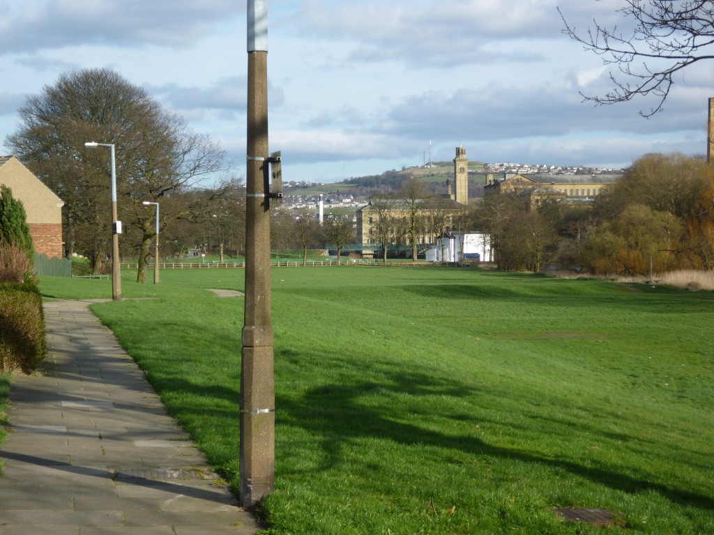 Looking east from the estate, we can see the Saltaire World Heritage Site across the river in the near distance…