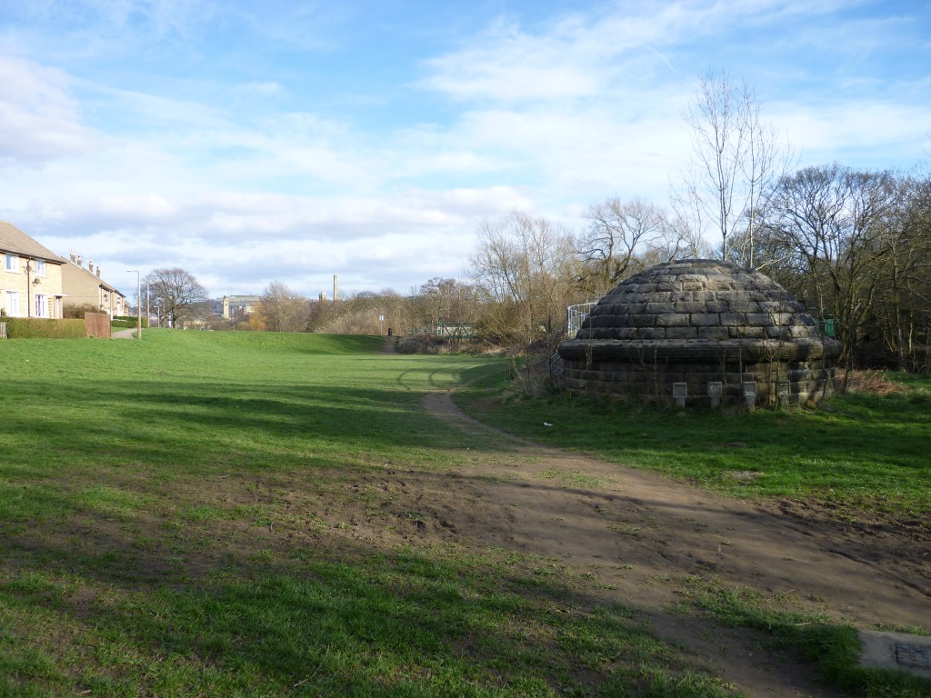 Further upstream along Bradford Beck, we come to a lengthy stretch of green space, similar to the flood plain area next to the Aire… But in the image below, the Beck disappears completely underneath the green for a short stretch…