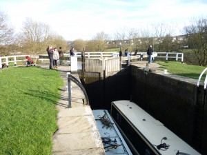 And over to the right of the image above, along a path past the mill cottages, we find Hirst Lock, on the Leeds and Liverpool canal – which runs more or less parallel with the Aire through the Shipley area… (having accompanied it down from Bingley, where the canal features a famous, ,”five-rise” lock)