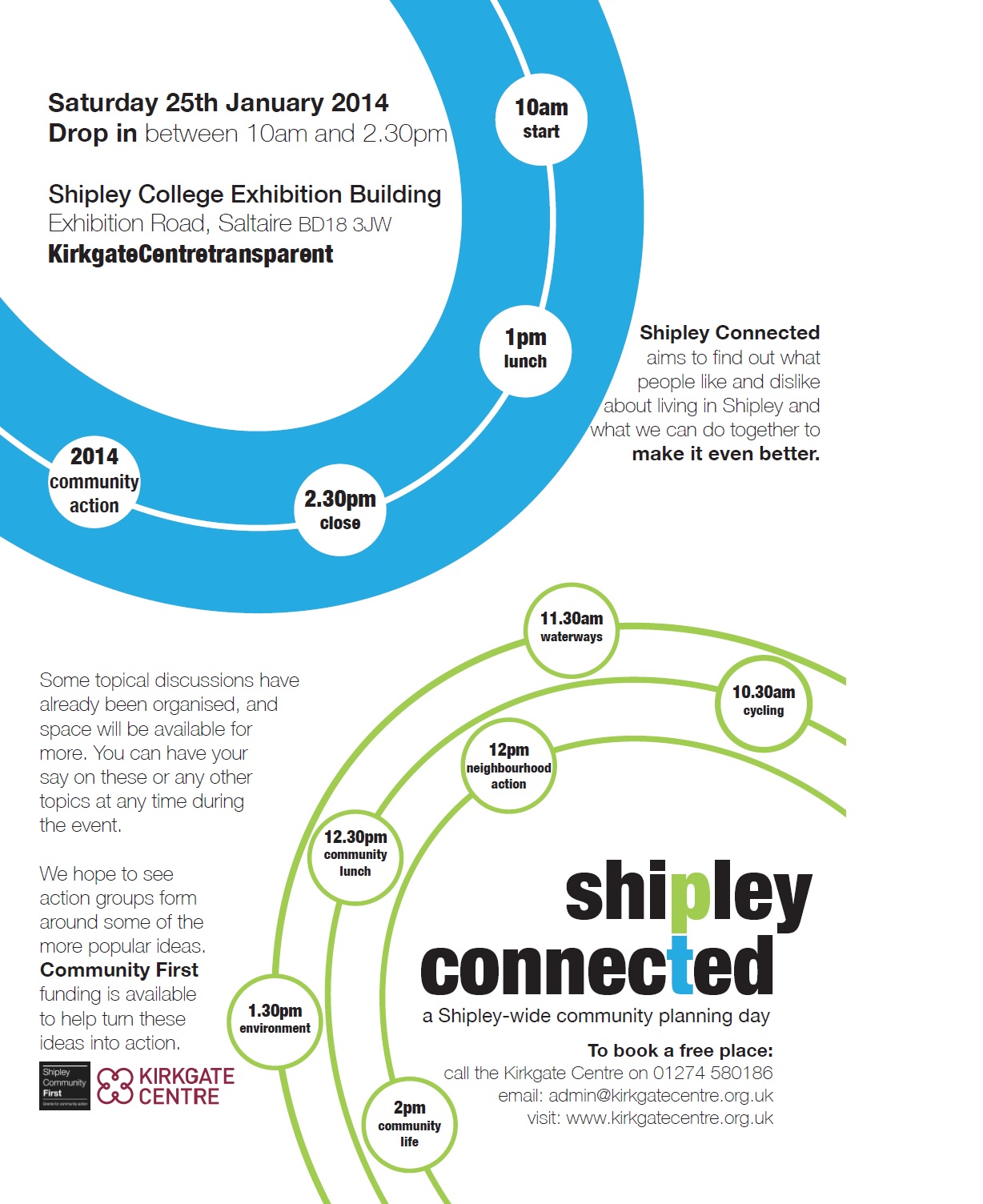 shipleycnntd2This marks the start of a new partnership between Multi-Story Water and the Kirkgate Community Centre, which we’ll be developing over the next couple of years. The idea will be to work actively with Kirkgate to engage local neighbourhood groups in conversations about both their own immediate concerns, and the ways in which these concerns might (or might not!) tie in with a renewed focus on the uses, conditions and potentials of the local rivers and canal… waterways that have shaped Shipley’s history, and that continue to determine (in part) the shape of its communities.