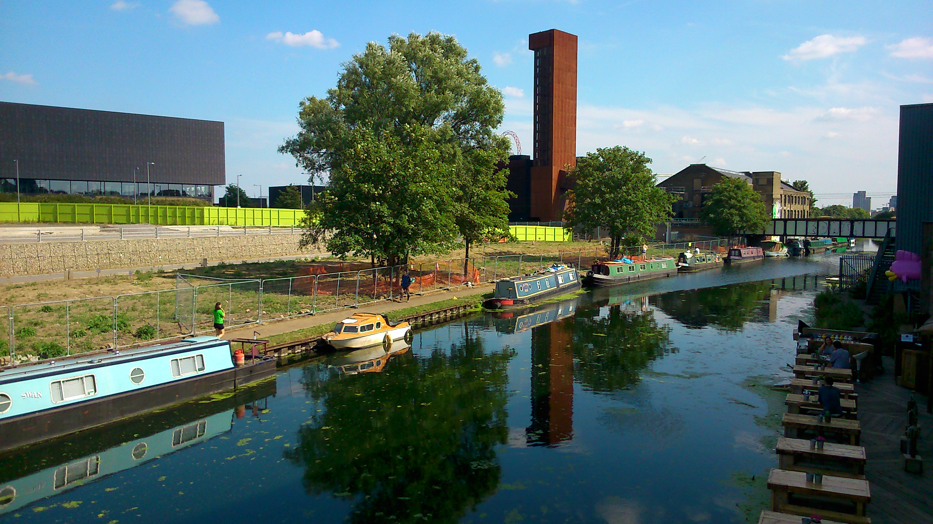 Yes, that green is the actual colour of the water — I dread to think what’s been emptied into it (perhaps from the silos you can see upstream…?). What with the concrete culvert you can also see here, supporting the main road, I was put in mind of Bradford Beck, and all the stories that used to be told about how filthy and toxic it once was….