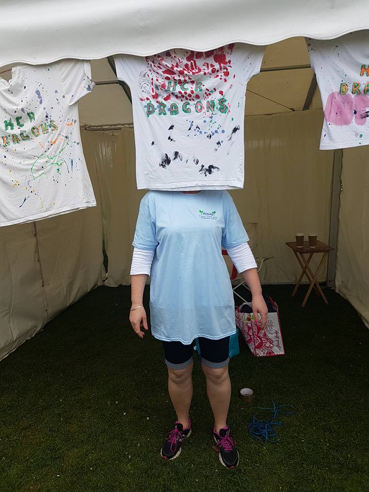 Difficult to argue with, once the point is made. HCRRG’s case was accepted, and the “HCR Dragons” thus competed at last year’s races, finishing 16th out of 45 boats — as reported in this blog post from a year ago. But that was then. This year, the team had its own rendezvous tent, pictured above, at which they displayed the hand-painted T-shirts worn by last year’s team. A year on, the HCR team was bigger, more organised, more prepared, and better dressed: