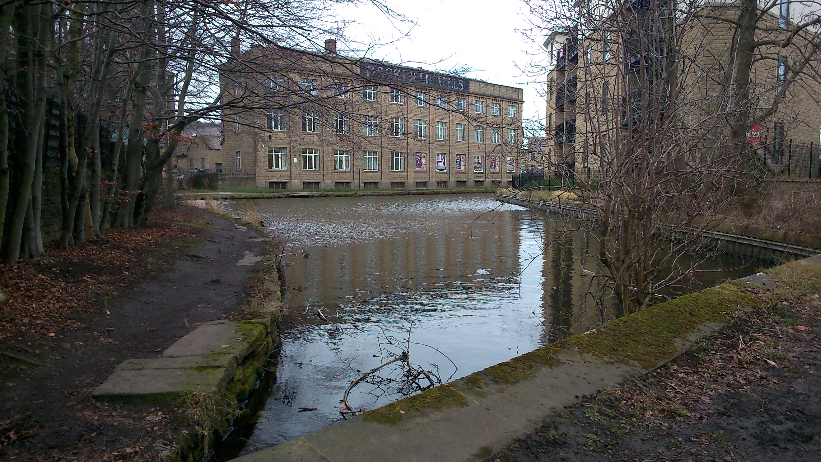 It was actually really interesting to talk with Mary immediately after she’d interviewed David Clapham (below, left). David is a scientist and water specialist who used to work with Bradford Council: he was really excellent at talking about the material and dynamic properties of water, in an engaging rather than a “dry” way (sorry). Eddie and I were then able to follow up from the cultural point of view, by talking not about “water” singular but about “waters” plural — as they were traditionally thought of, in the days before H2O was seen as a unified resource. (Of course waters still do vary in property and character from place to place, depending on mineral qualities etc.) Eddie’s songs often give particular watercourses personal identities, by singing in the first person: “My name is Bradford Beck… If you’re wondering what the heck I’m doing singing this song, it’s cos I have to roll along, incognito… Beneath the city streets, with no credibility…”