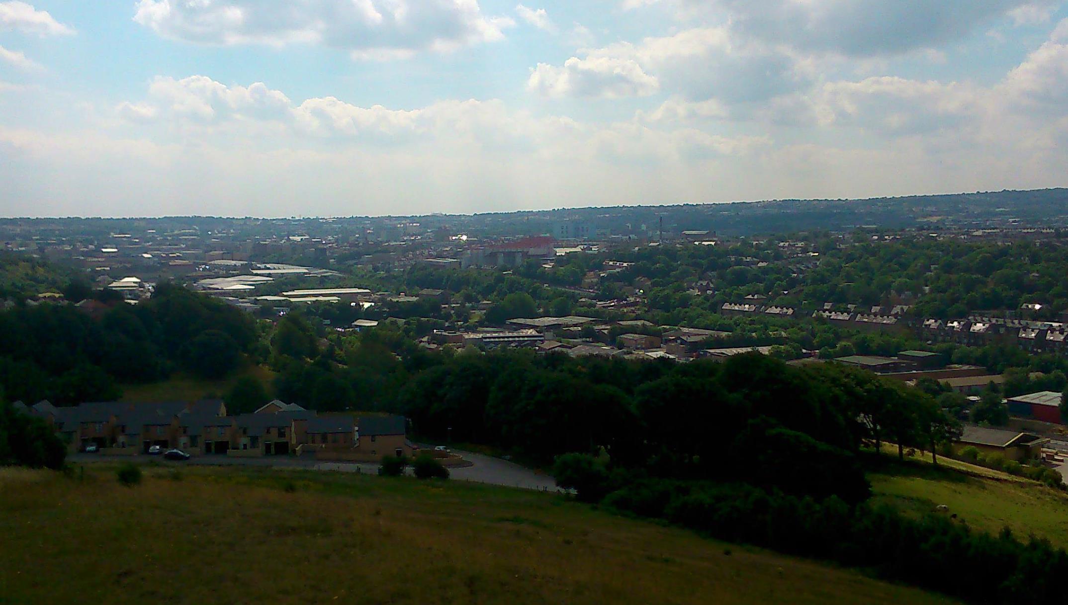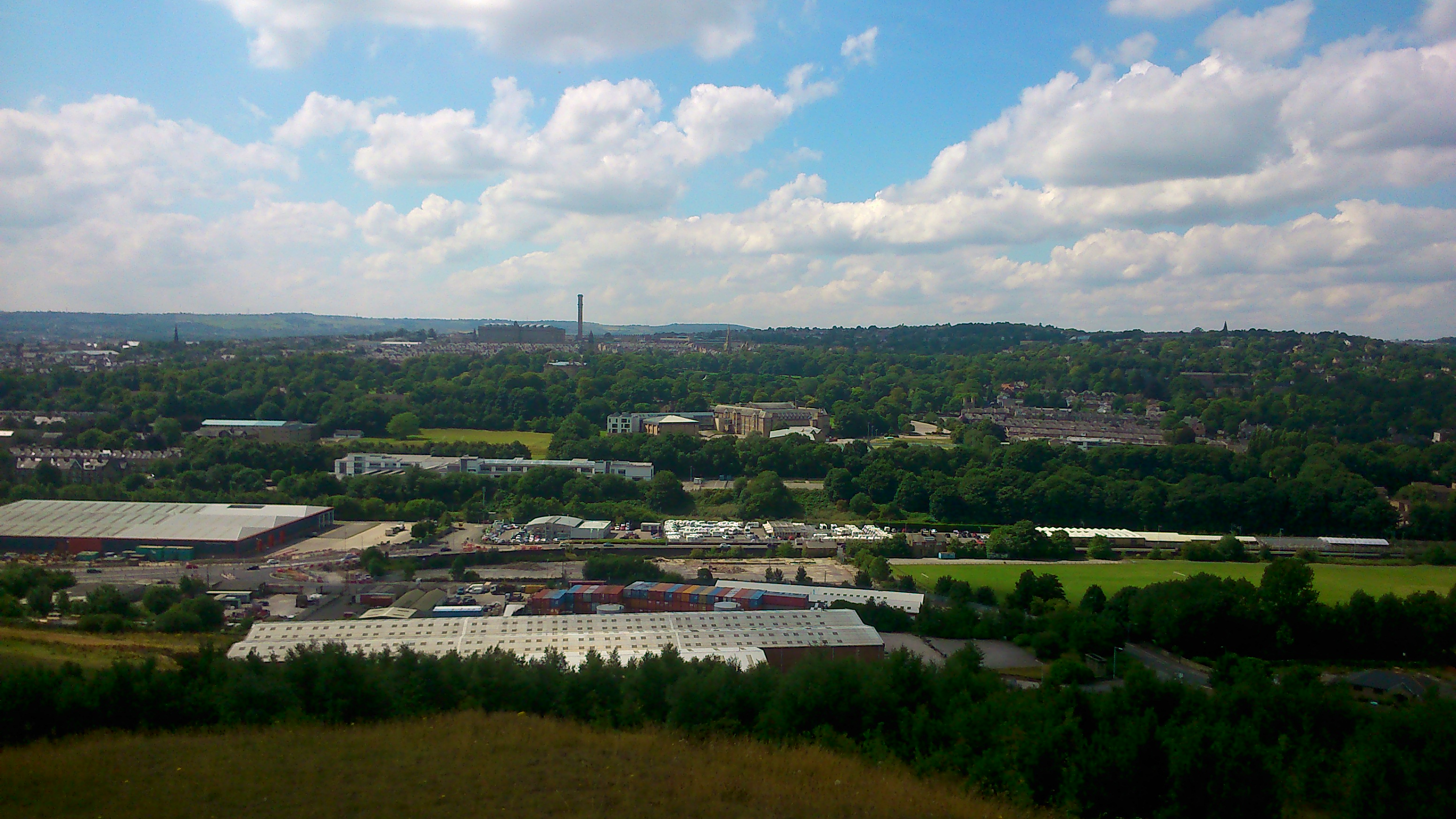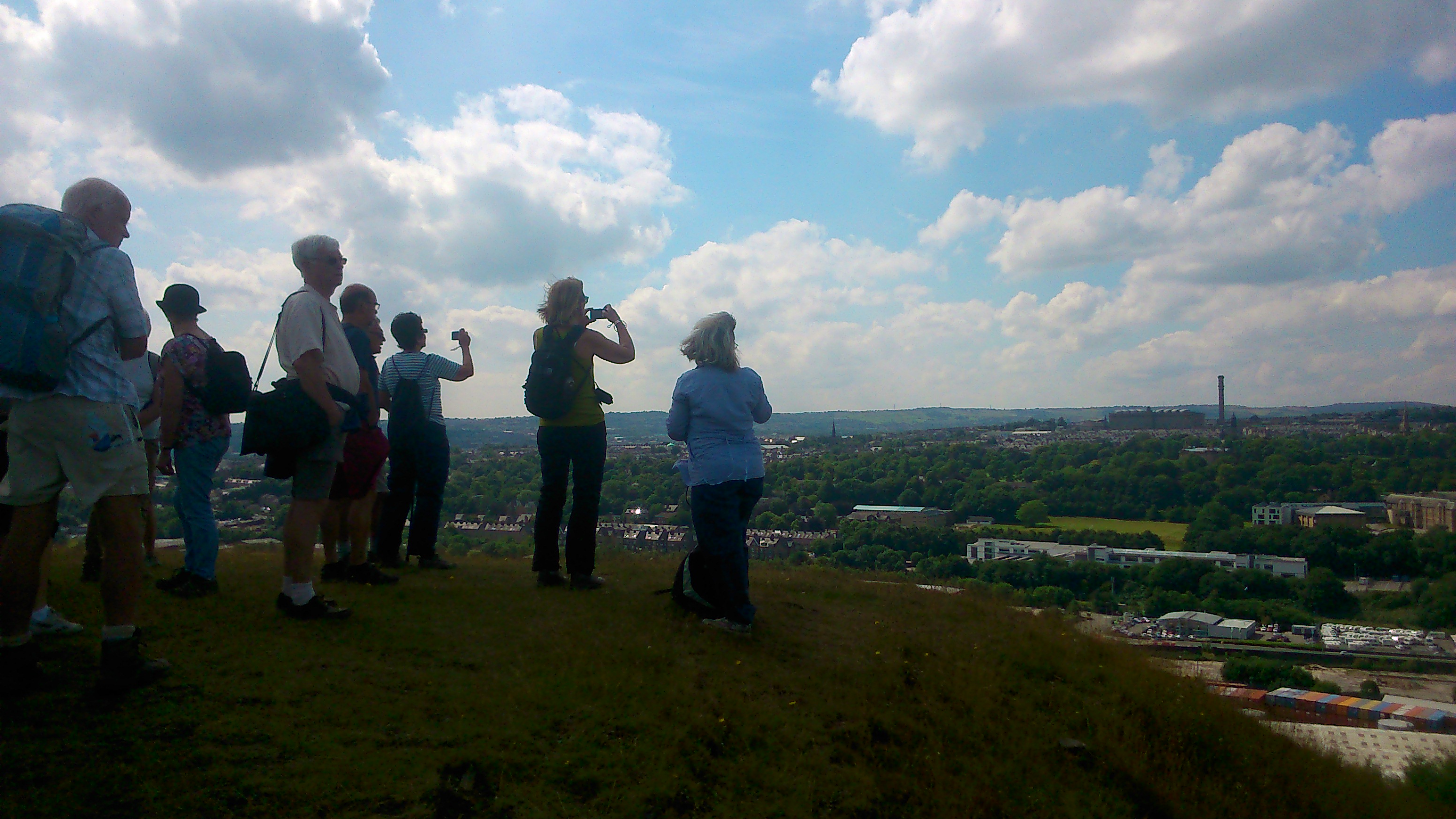 Having reached Gilstead, we paused momentarily to consider the blue plaque commemorating Sir Fred Hoyle — famous son of Gilstead, world-leading scientist, and a poet of a different kind… (On radio in 1949, he coined the term “Big Bang” as a put-down to the recently-developed theory, only for it to stick as a descriptor!) Then finally we came to the Milner Field estate…