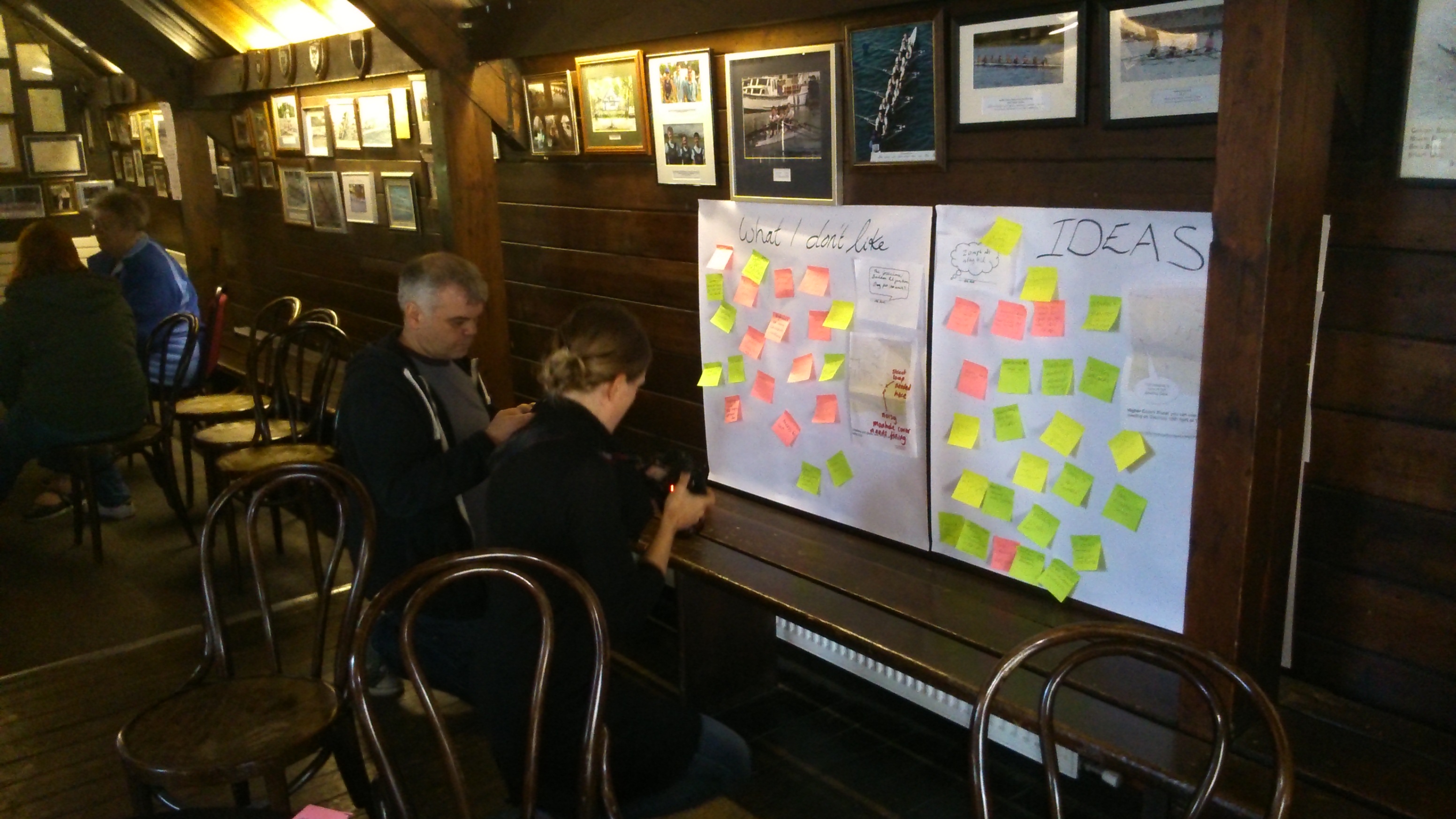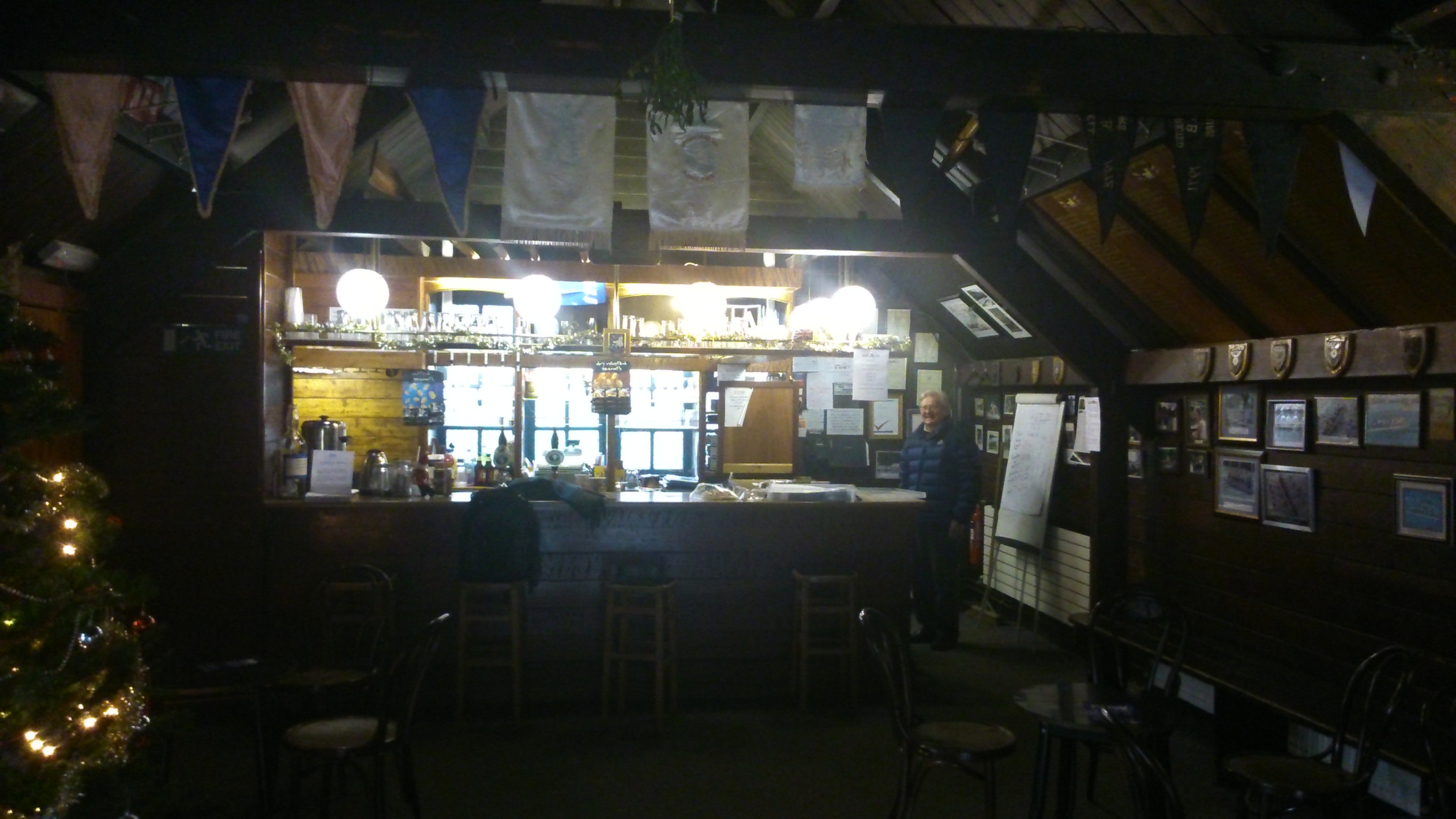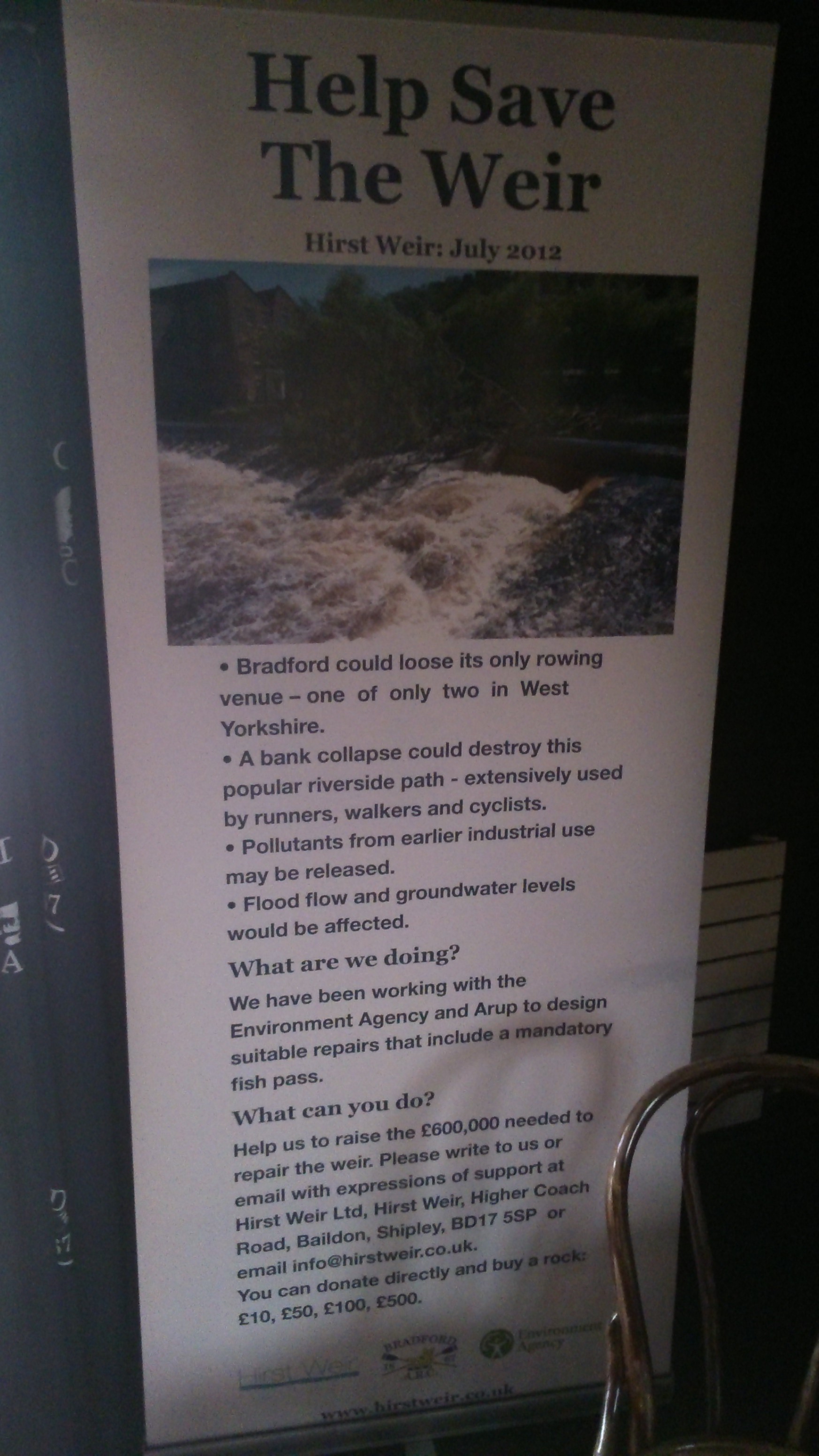 After making our way back downhill through the Milner Field estate, we finished up the walk with a visit to Bradford Amateur Rowing Club’s clubhouse — where we shared a drink and were treated to a number of additional songs from Eddie (who even took requests). The picture above (showing Eddie, me, Molly Kenyon, Rob Martin … others were at the bar at this point!) is courtesy of Denise Boothman, who sent it over to me by email with a note saying “Thanks once again for a fascinating and enjoyable afternoon.” We certainly enjoyed presenting it… Thankyou Saltaire Festival for inviting us to present.