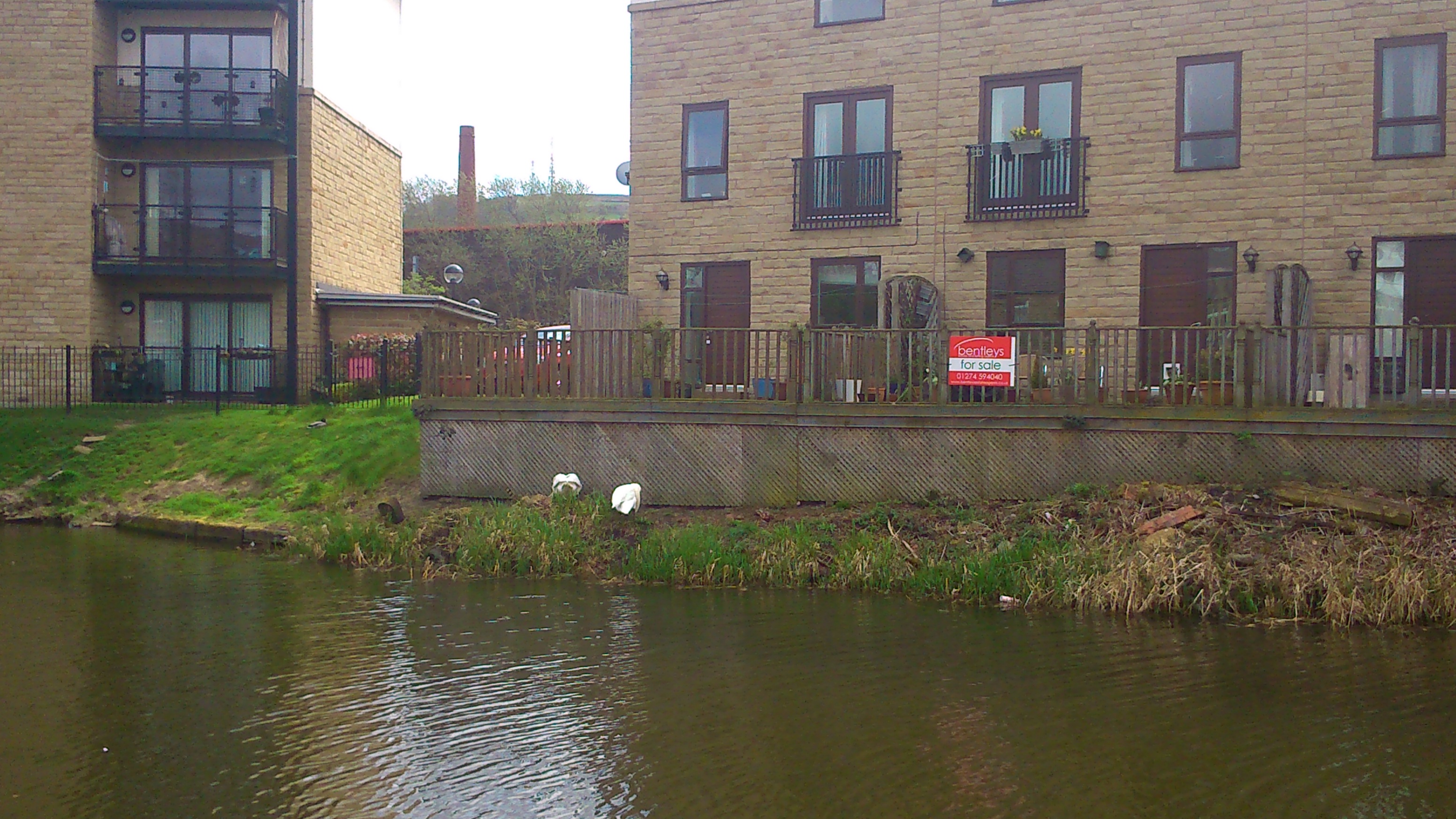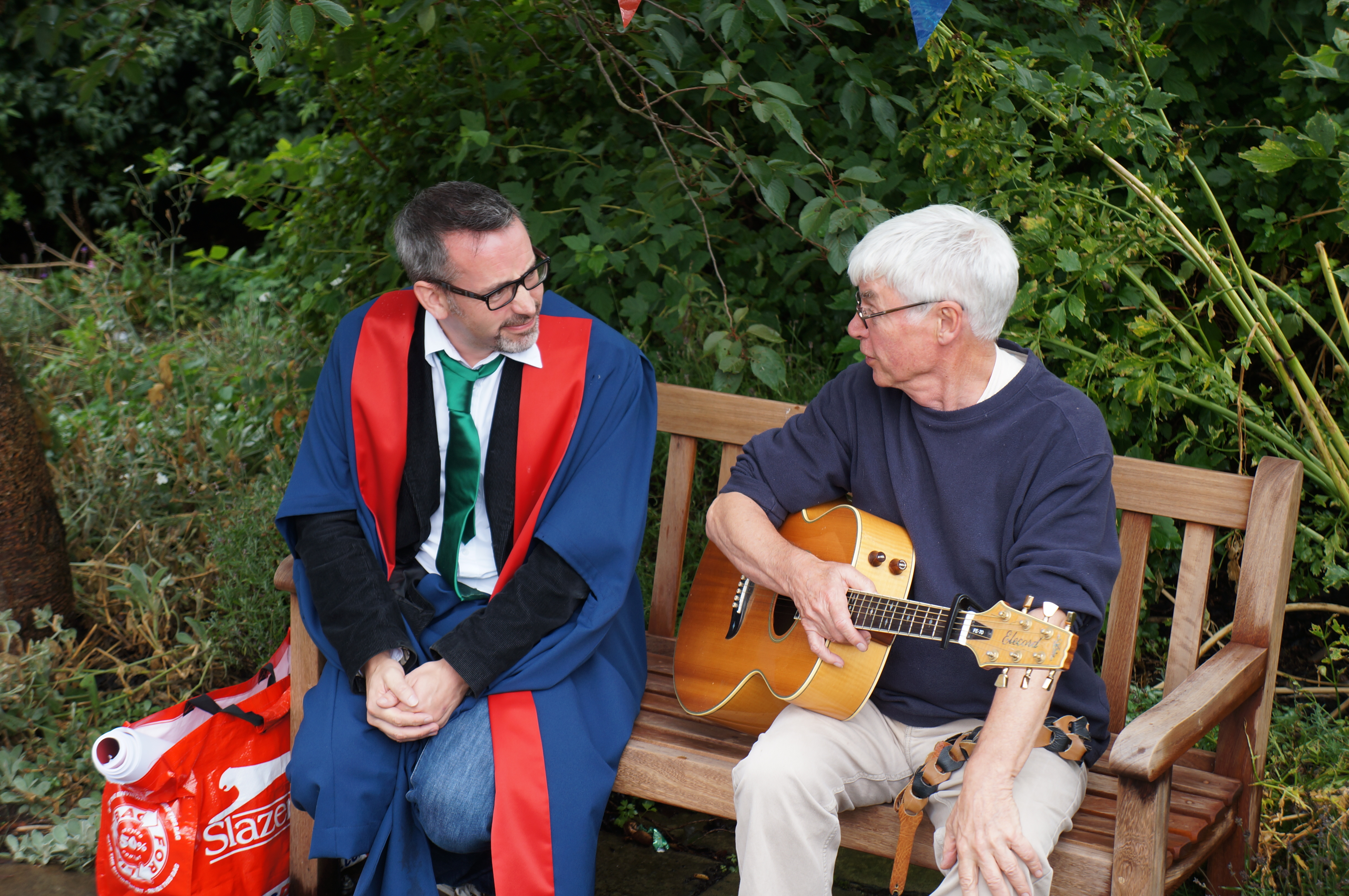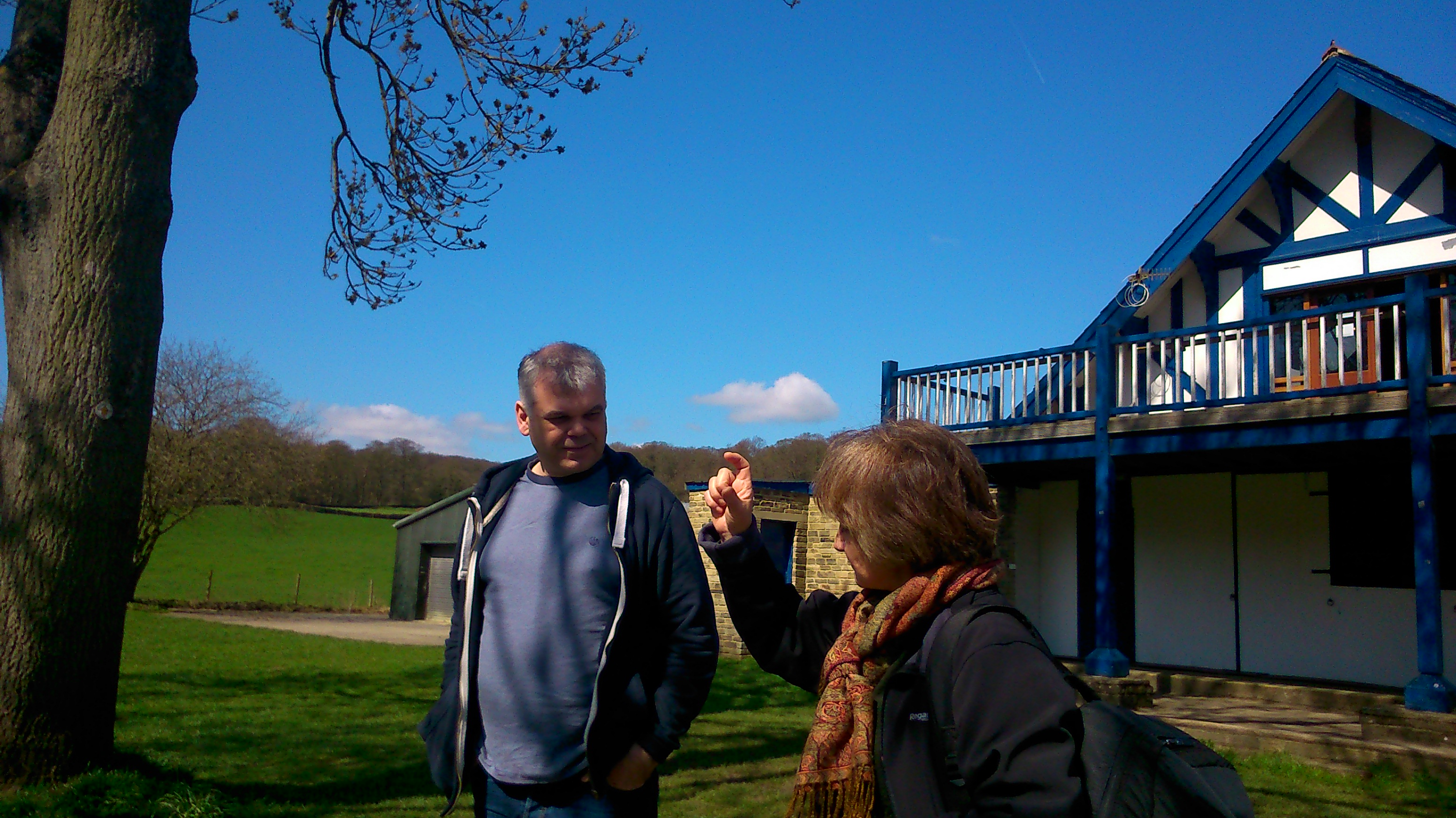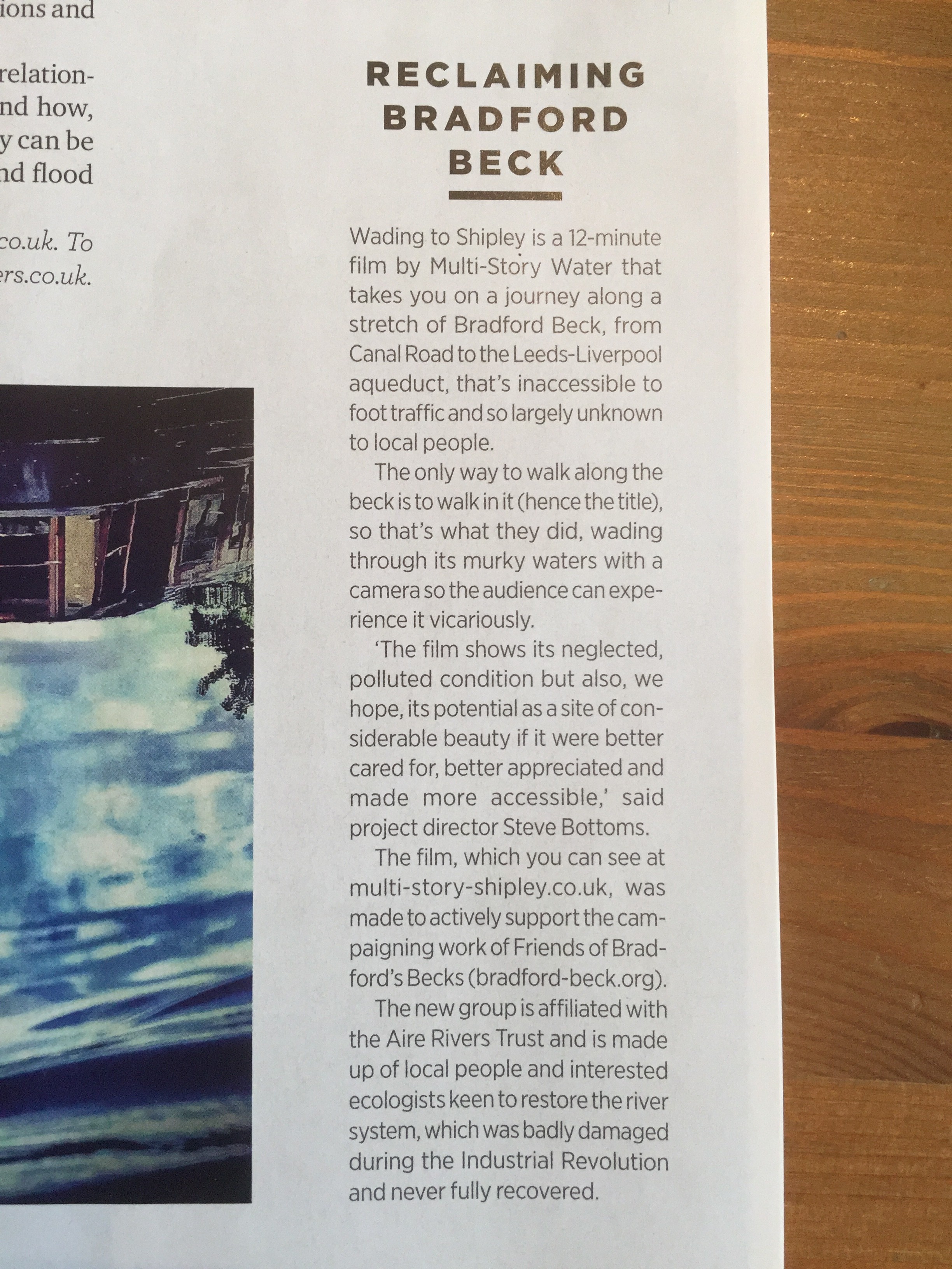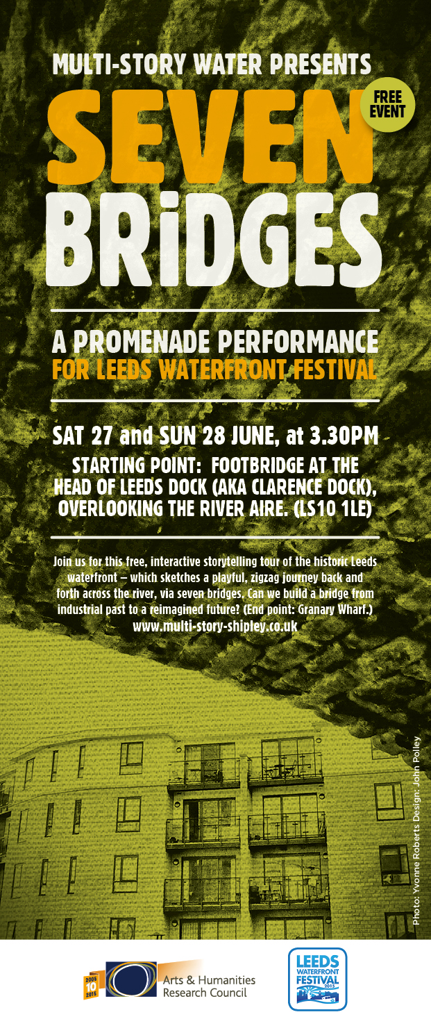It was actually really interesting to talk with Mary immediately after she’d interviewed David Clapham (below, left). David is a scientist and water specialist who used to work with Bradford Council: he was really excellent at talking about the material and dynamic properties of water, in an engaging rather than a “dry” way (sorry). Eddie and I were then able to follow up from the cultural point of view, by talking not about “water” singular but about “waters” plural — as they were traditionally thought of, in the days before H2O was seen as a unified resource. (Of course waters still do vary in property and character from place to place, depending on mineral qualities etc.) Eddie’s songs often give particular watercourses personal identities, by singing in the first person: “My name is Bradford Beck… If you’re wondering what the heck I’m doing singing this song, it’s cos I have to roll along, incognito… Beneath the city streets, with no credibility…”