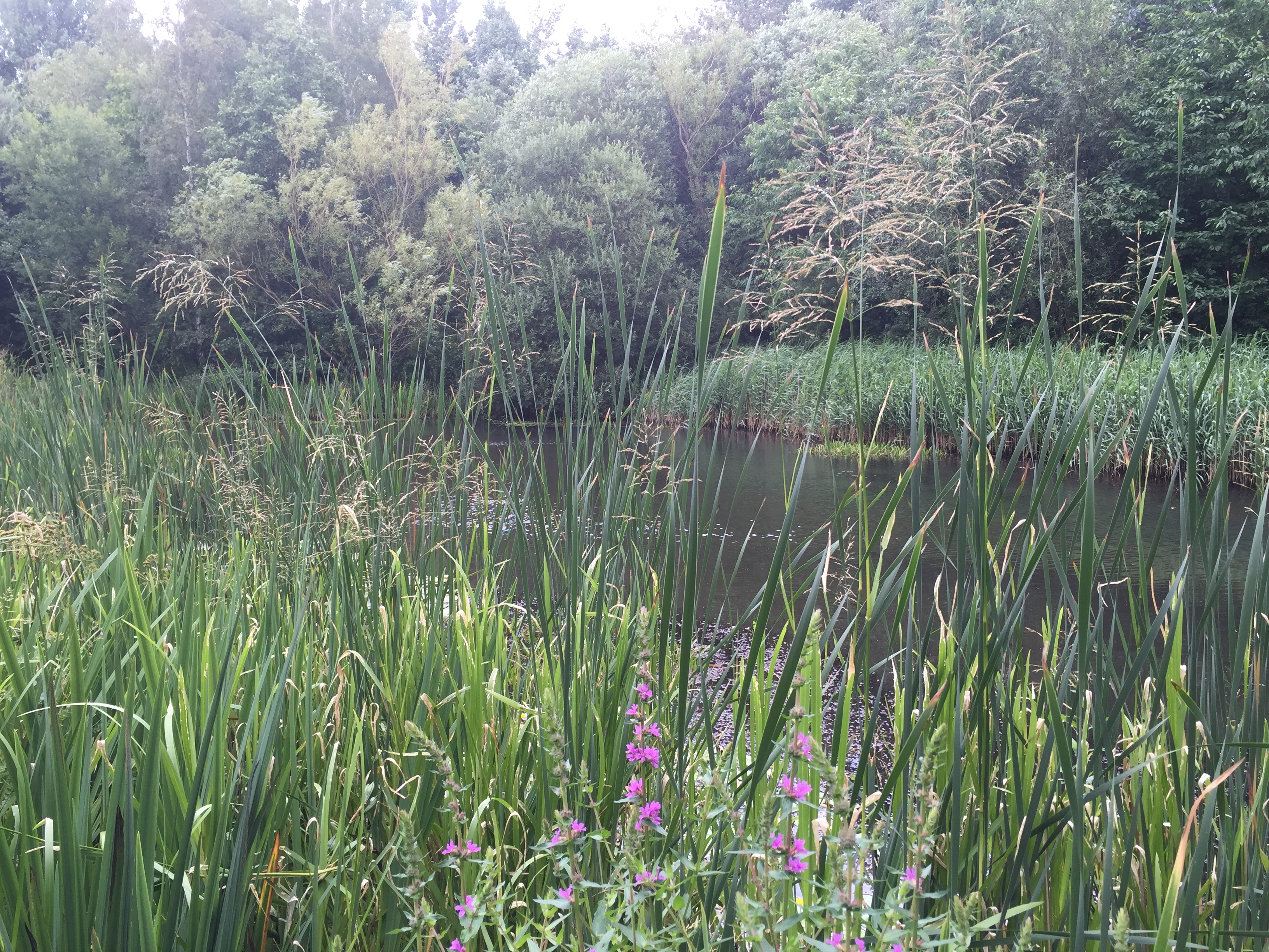 Heading further along Sparable Lane, we turned at corner of the walled gardens on the edge of the Milner Field mansion estate (below). By this stage, the weather had turned towards rain — as you can see from the umbrellas — but we were largely sheltered by trees and it was actually rather nice to get the cooling rain after the walk uphill. The rain then subsided soon enough (unlike the day before…).