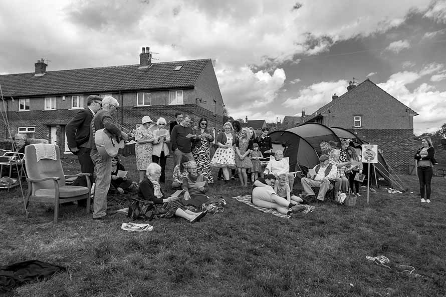 Every year, towards the end of April, the Victorian mill village of Saltaire celebrates its UNESCO World Heritage Site status with a series of special events over “World Heritage Weekend”. In 2017, the Higher Coach Road Residents’ Group held a picnic to celebrate the distinct heritage of their own housing estate — which lies directly west of Saltaire’s Roberts Park, and within the world heritage “buffer zone”. Since the estate was built in the 1950s, though, it was this time period that was celebrated.