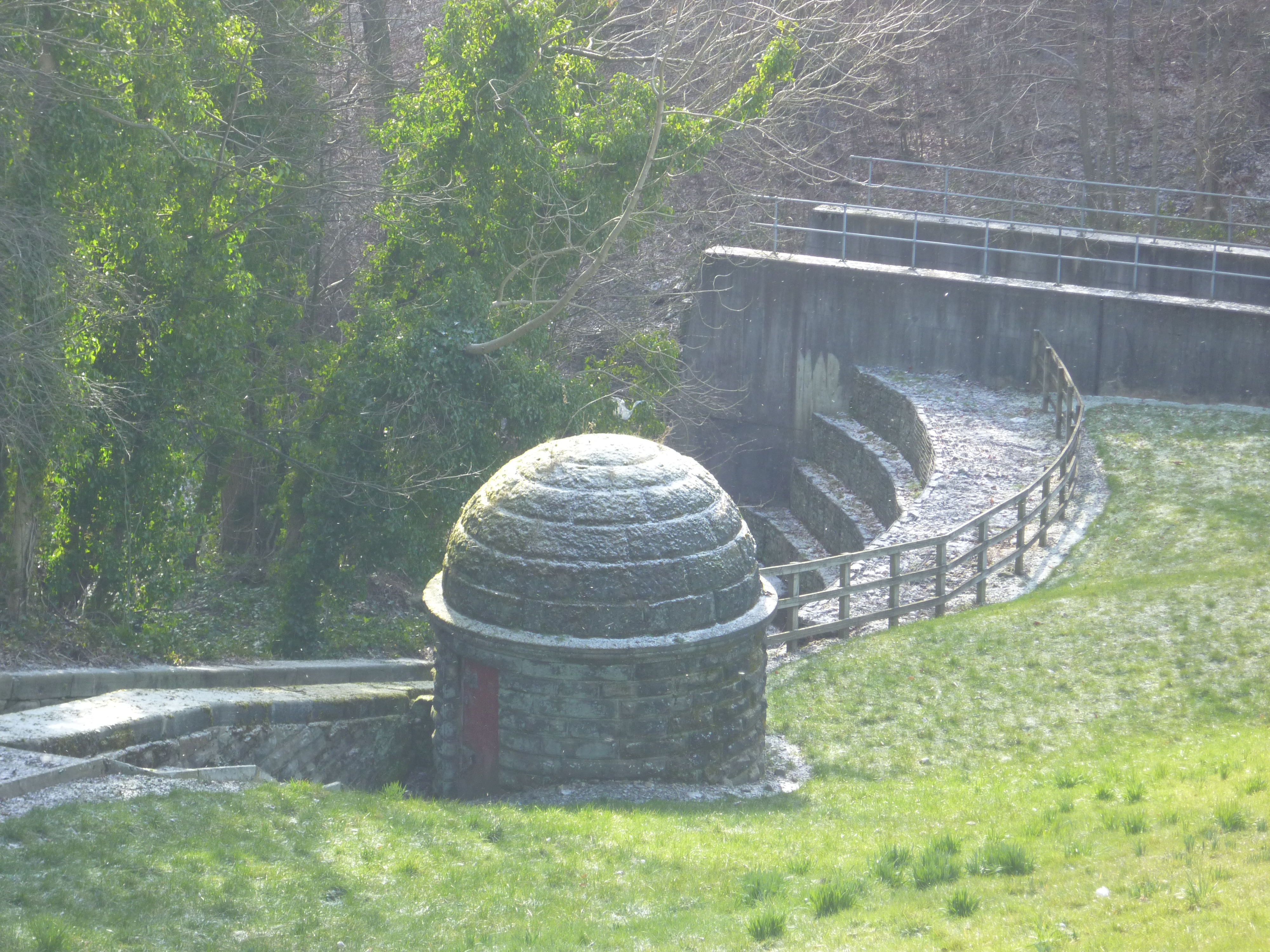 chellow pitty 067The reservoirs no longer serve any utilitarian purpose: it was long since concluded that Chellow Dean Beck has little enough water in it without the Council siphoning it off (presumably to serve the wool industry and its dye-houses, back in the day…). But it’s all maintained beautifully as a park area. I also was also personally pleased to see the domed Victorian pumping station at the base of the lower reservoir, very similar to the ones next to the Aire to the west of Shipley.