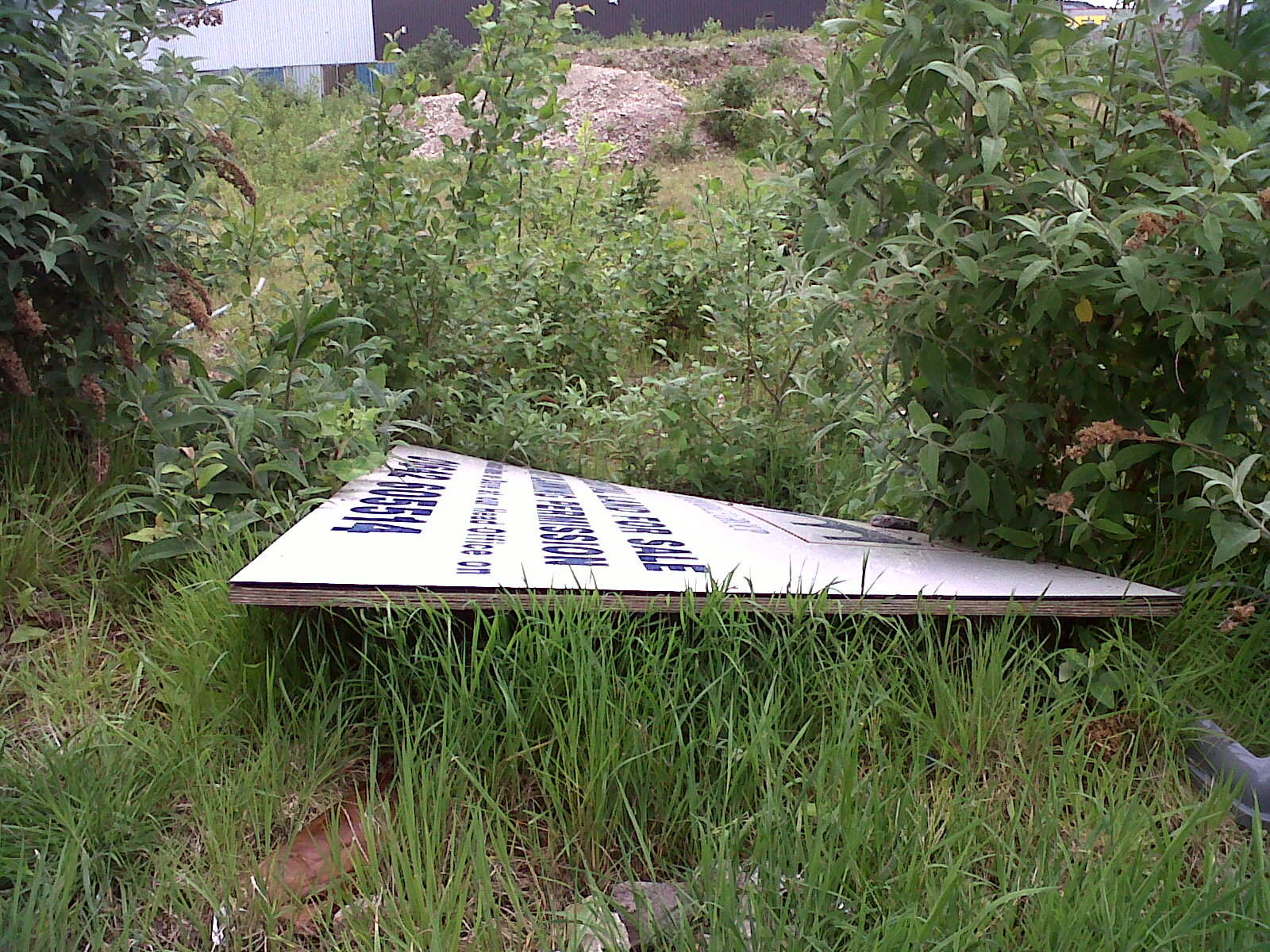 The property developers in question, the Mandale Group, have left these fetching metal hoardings surrounding the site for the last five or six years — creating something of an eyesore for residents, and arguably attracting “undesirables” to the area (as in the ‘broken windows’ theory of anti-social behaviour – if a place looks neglected and uncared for, it will attract carelessness…).