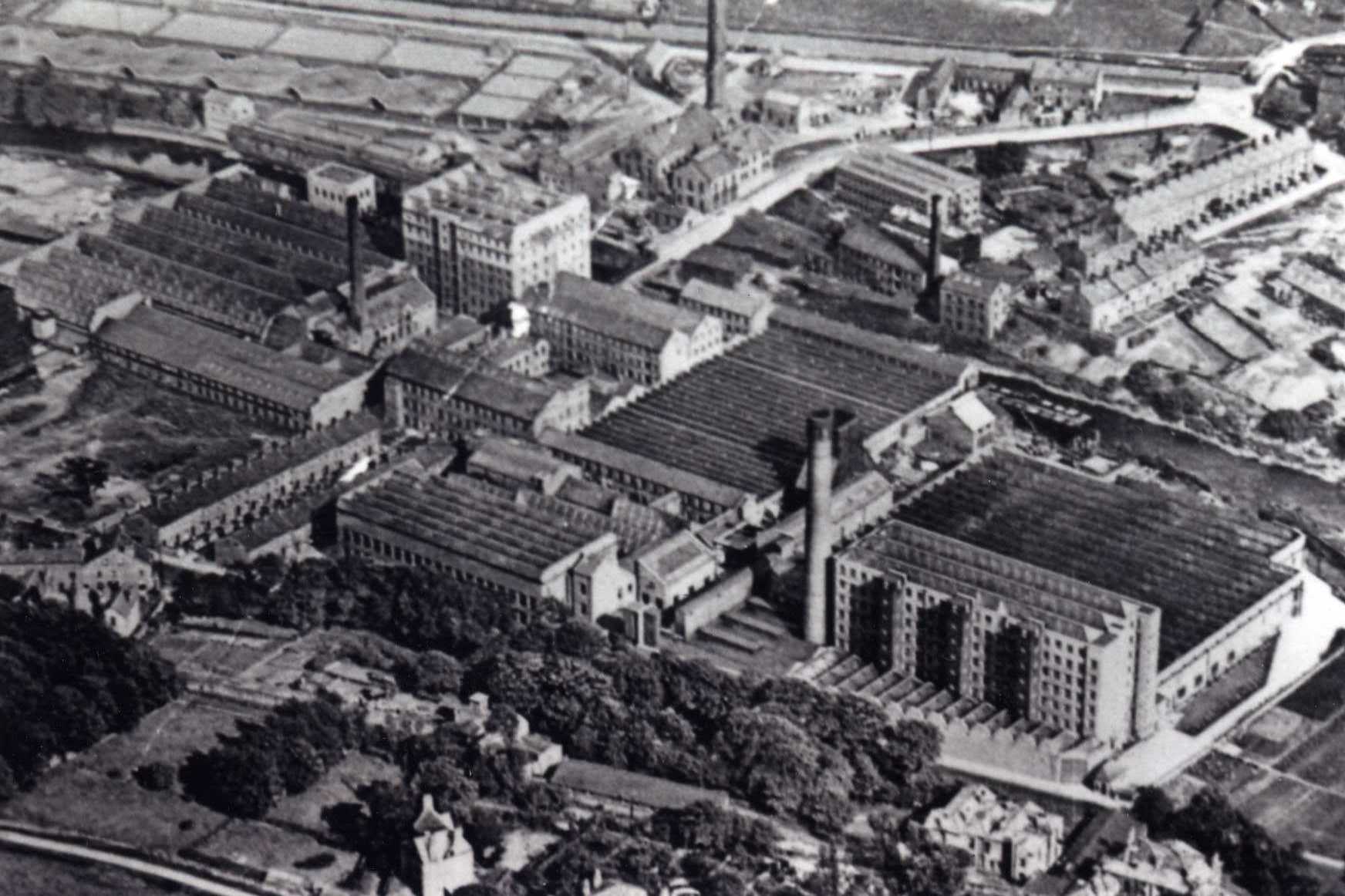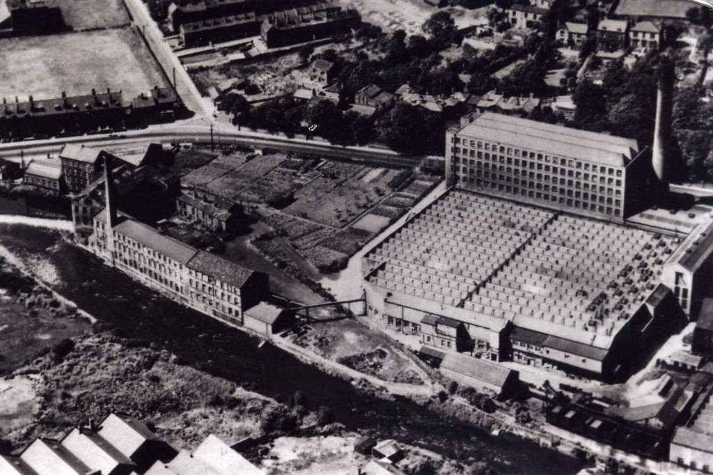 To orientate your a bit, here’s an image not of Lower Holme but of the adjacent site, when it was occupied by the Airedale Combing plant. In this shot you can clearly see the River Aire towards the bottom left – running down from the weir that used to serve the long-disappeared Baildon water mill. The image gives you an idea of the sheer scale of Airedale Combing, once one of Bradford’s most advanced mills….
